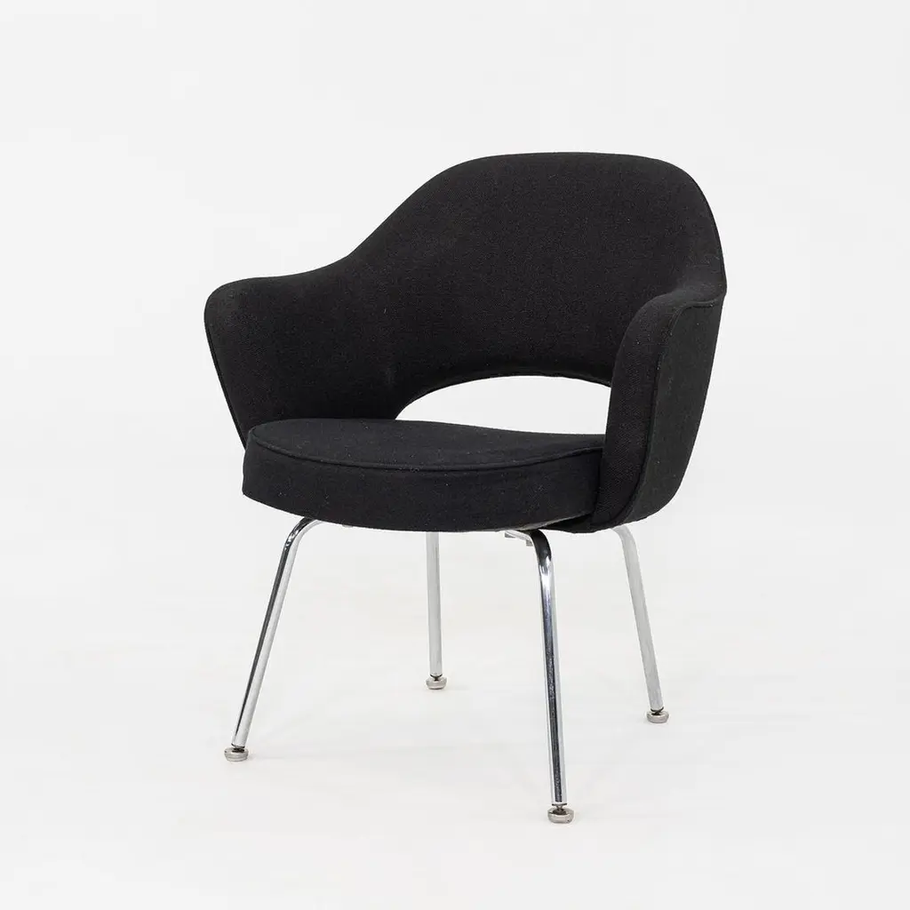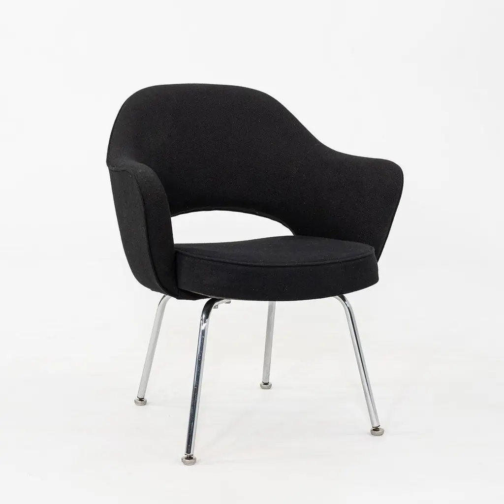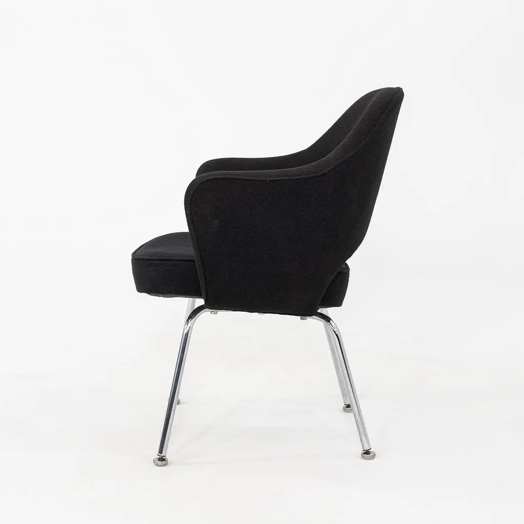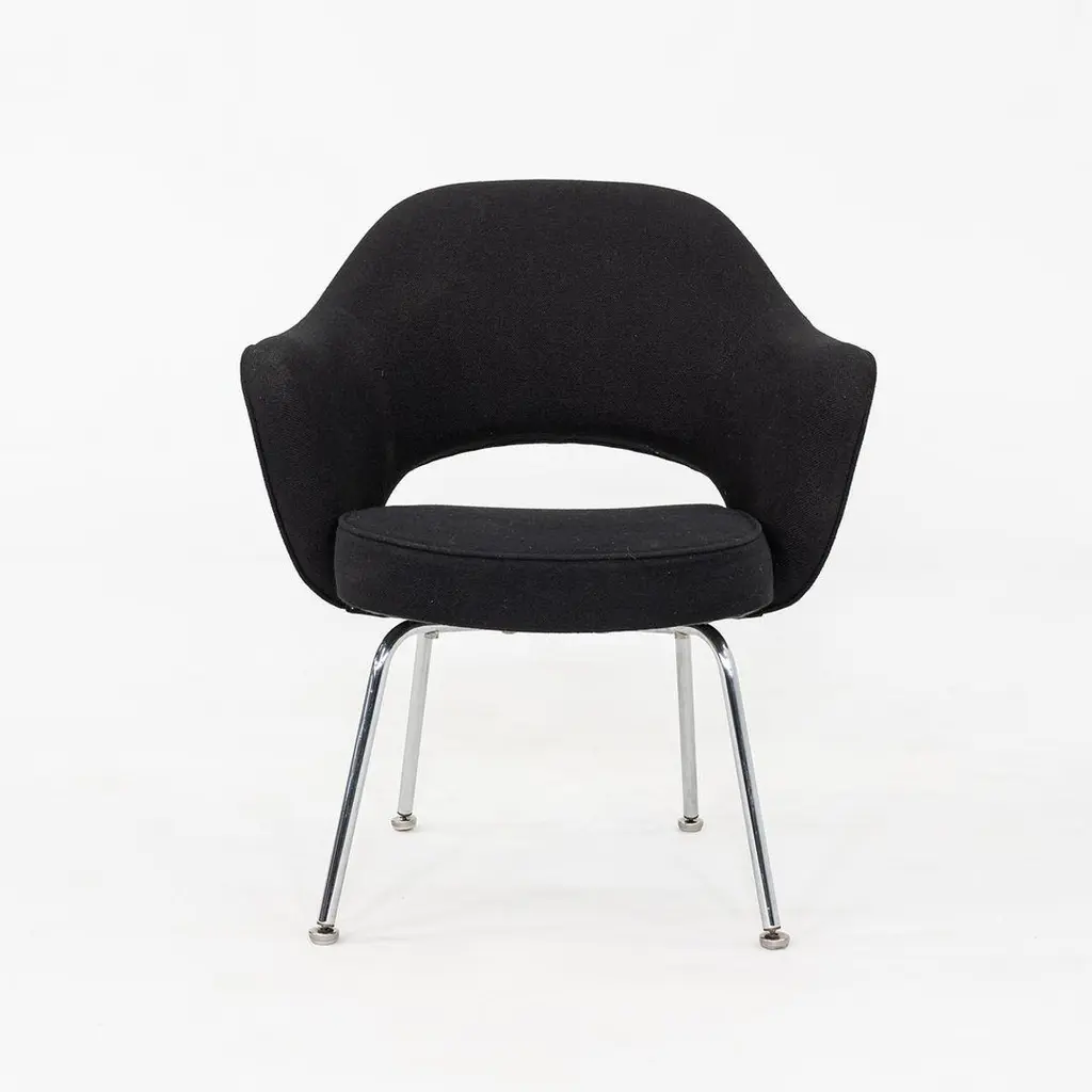These is a Saarinen Executive Arm Chair, originally designed by Eero Saarinen for Knoll in 1957. These particular examples were produced in the 1960s and had been reupholstered in 1988. Their design features chromed-steel tubular legs with an upholstered seat and back in grey hopsack fabric. The listed price includes one chair and we have 14 available to purchase. Each chair measures 26 inches wide, 24.75 inches deep, and 31.5 inches high with a seat height of 18 inches. Some of these pieces do have minor marks on the seat . Otherwise, these chairs are in good to very good condition. Please see photos.