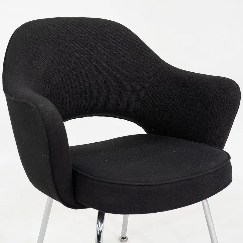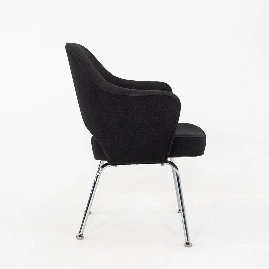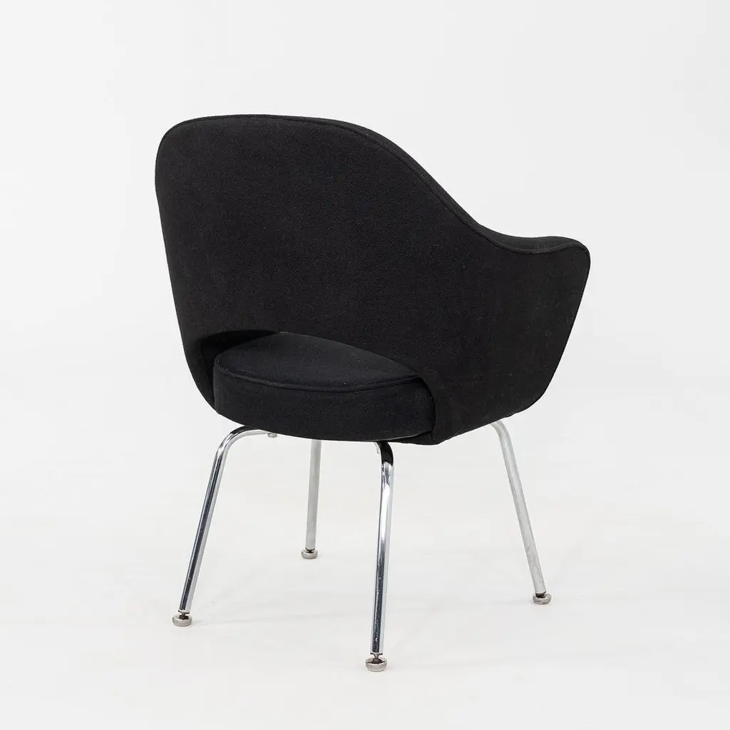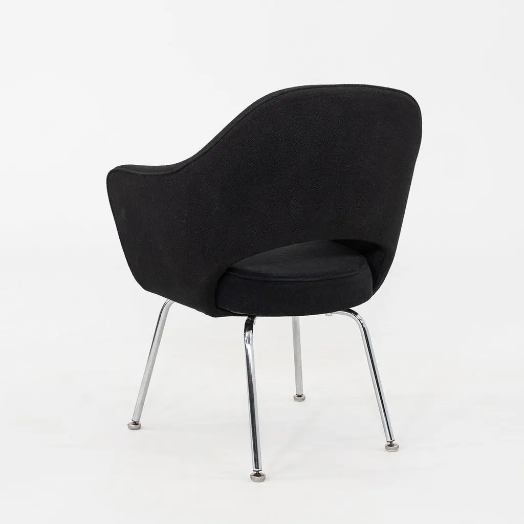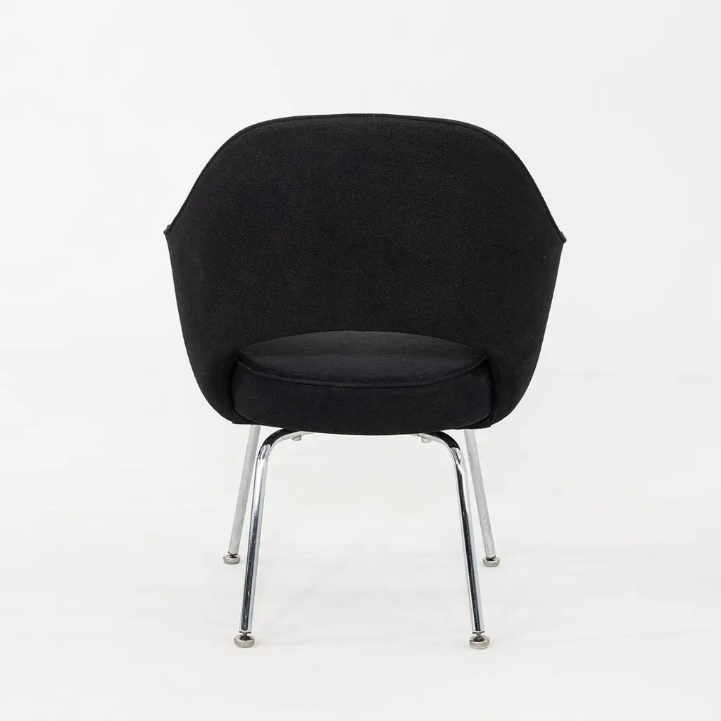 These is a Saarinen Executive Arm Chair, originally designed by Eero Saarinen for Knoll in 1957. These particular examples were produced in the 1960s and had been reupholstered in 1988. Their design features chromed-steel tubular legs with an upholstered seat and back in grey hopsack fabric. The listed price includes one chair and we have 14 available to purchase. Each chair measures 26 inches wide, 24.75 inches deep, and 31.5 inches high with a seat height of 18 inches. Some of these pieces do have minor marks on the seat . Otherwise, these chairs are in good to very good condition. Please see photos.