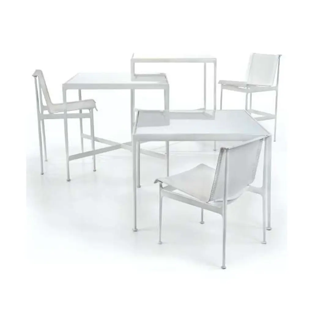 It's one thing to create furniture designed to withstand the outdoors – and something else to pull it off with enduring style. Yet that's what Richard Schultz managed to do with the 1966 Collection, originally commissioned by Florence Knoll. This dining chair features the weather-resistant materials typical of the collection, and coordinates perfectly with matching chairs and tables to create a fashionable dinette ready for dinner under the stars. Design by Richard Schultz, 1966. By Knoll.