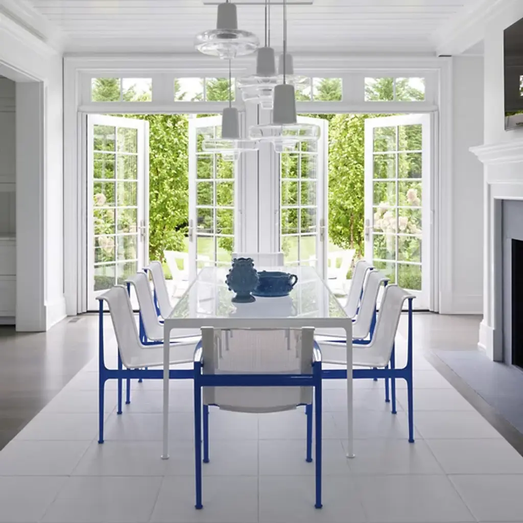 It's one thing to create furniture designed to withstand the outdoors – and something else to pull it off with enduring style. Yet that's what Richard Schultz managed to do with the 1966 Collection, originally commissioned by Florence Knoll. This dining chair features the weather-resistant materials typical of the collection, and coordinates perfectly with matching chairs and tables to create a fashionable dinette ready for dinner under the stars. Design by Richard Schultz, 1966. By Knoll.