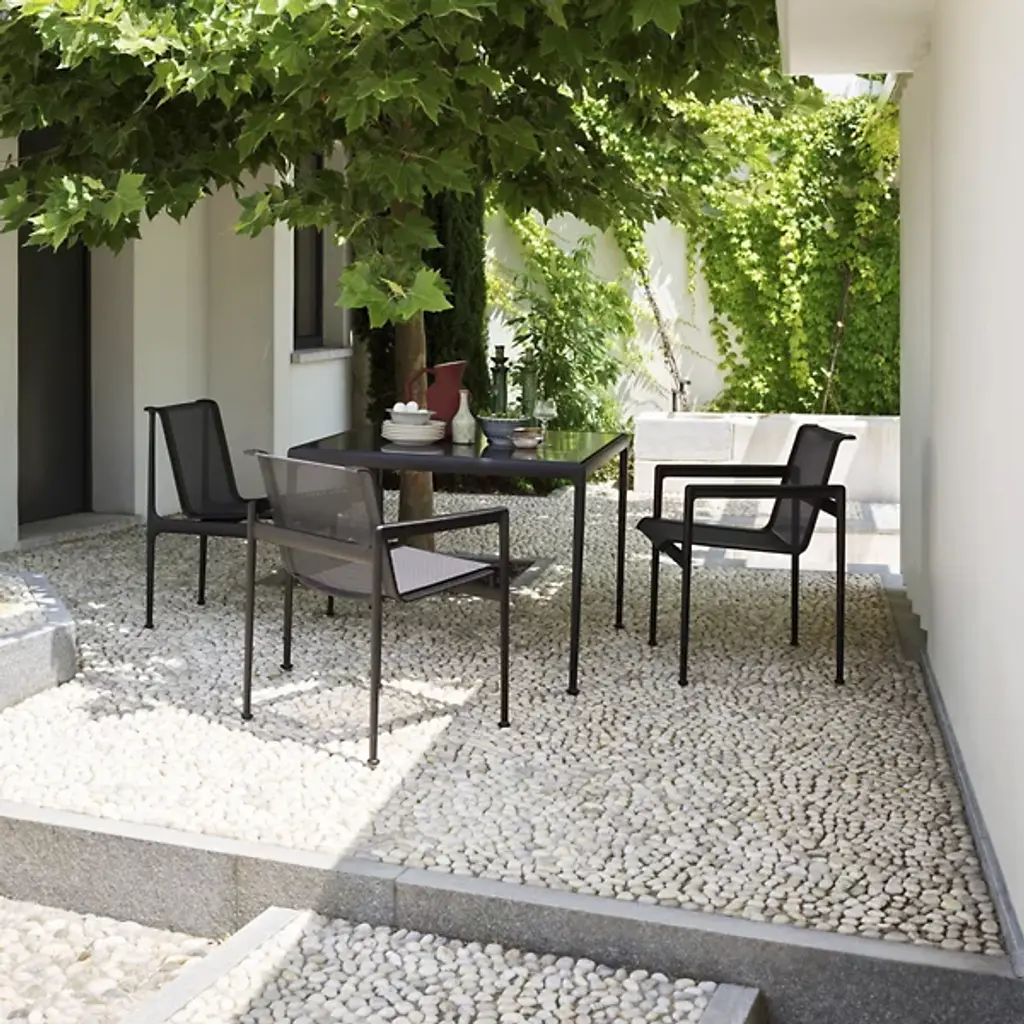 Bringing timeless fashion to outdoor furniture is no easy task even today – but Richard Schultz did just that in the 1966 Collection, commissioned by Florence Knoll during the poster decade of streamlined style. This dining chair features built-in armrests and weather-resistant materials ready to coordinate seamlessly with matching chairs and tables for an outdoor dinette under the sky and stars.