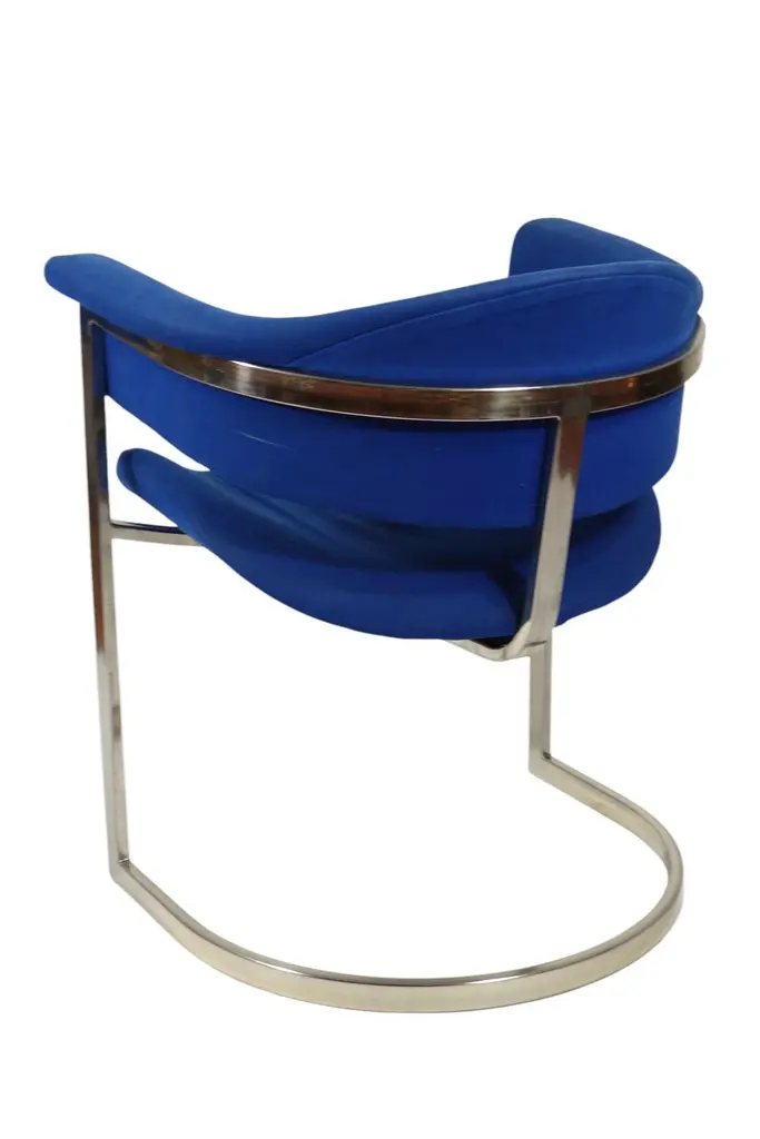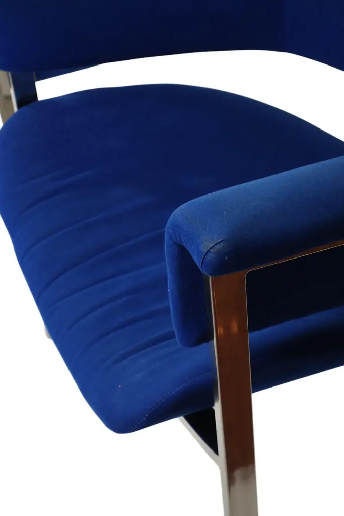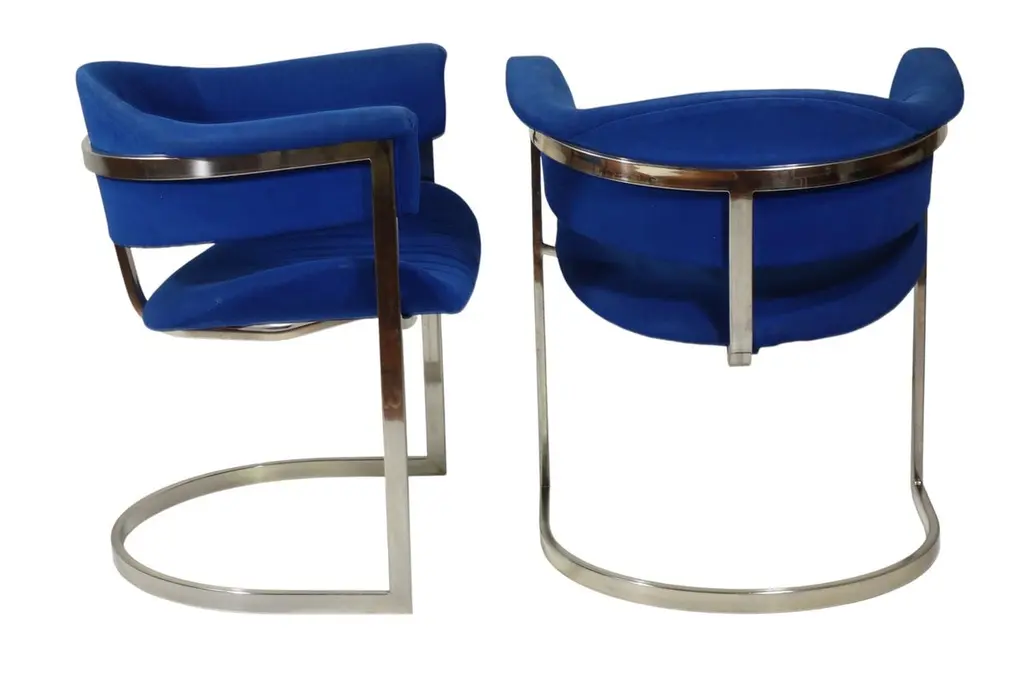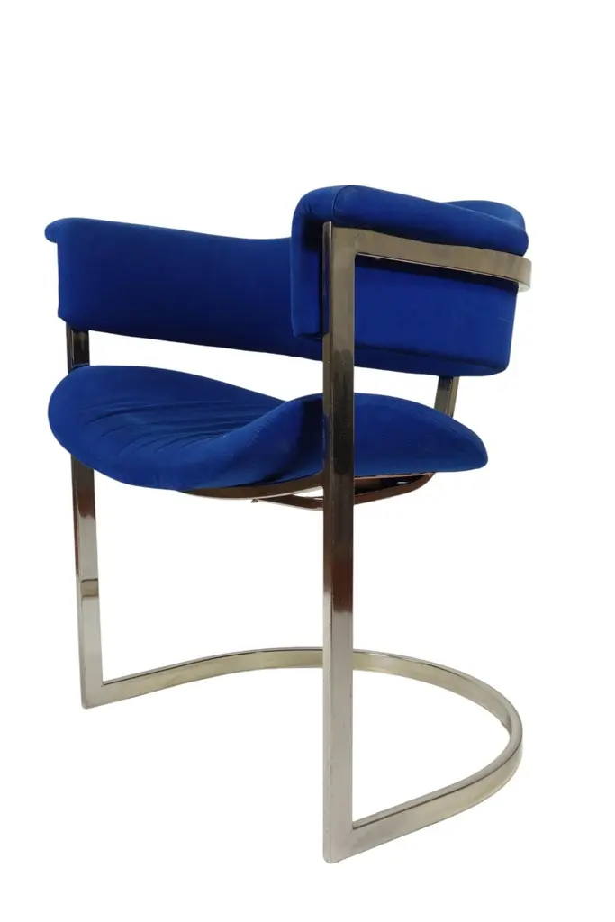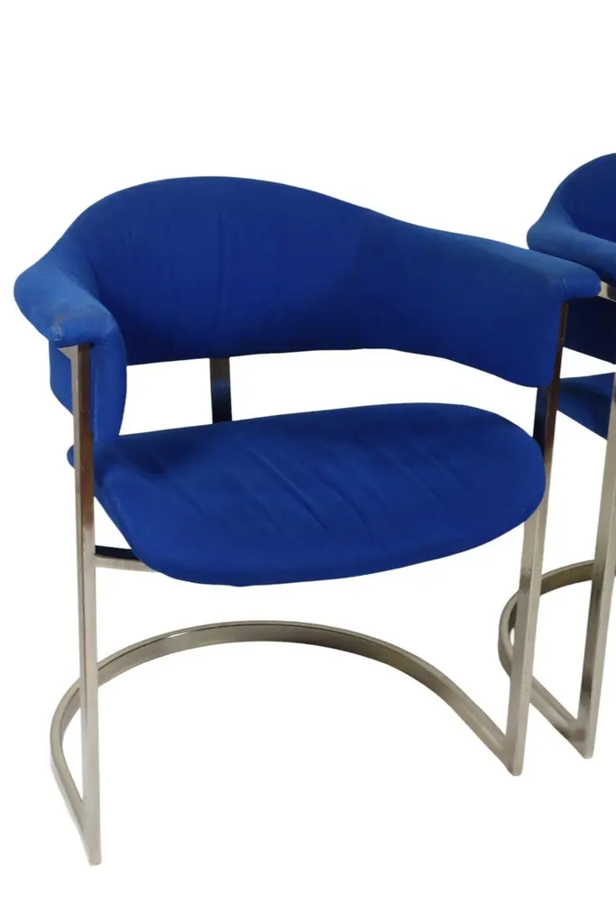 Pair of Dining ChairsDesign Vittorio Introini for Mario SabotItaly, 1970Chrome Metal FrameBlue Fabric Upholstery