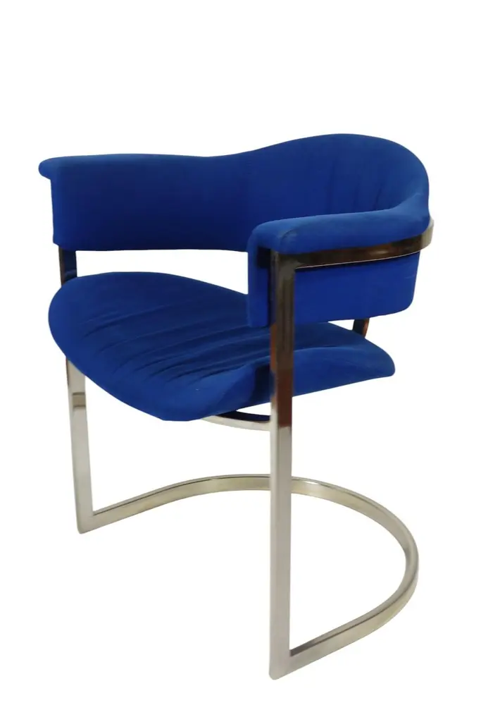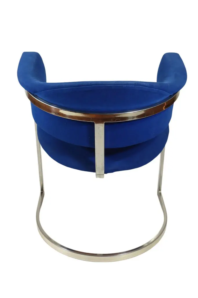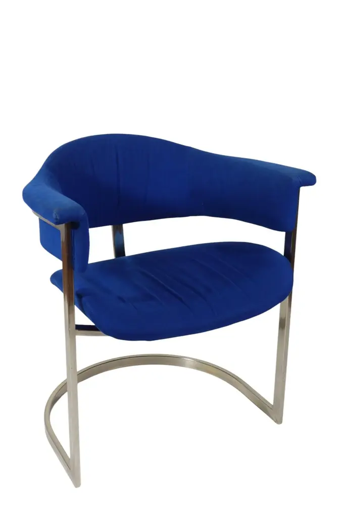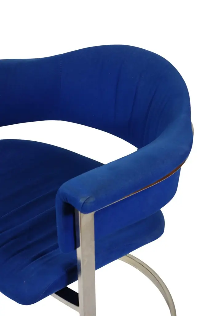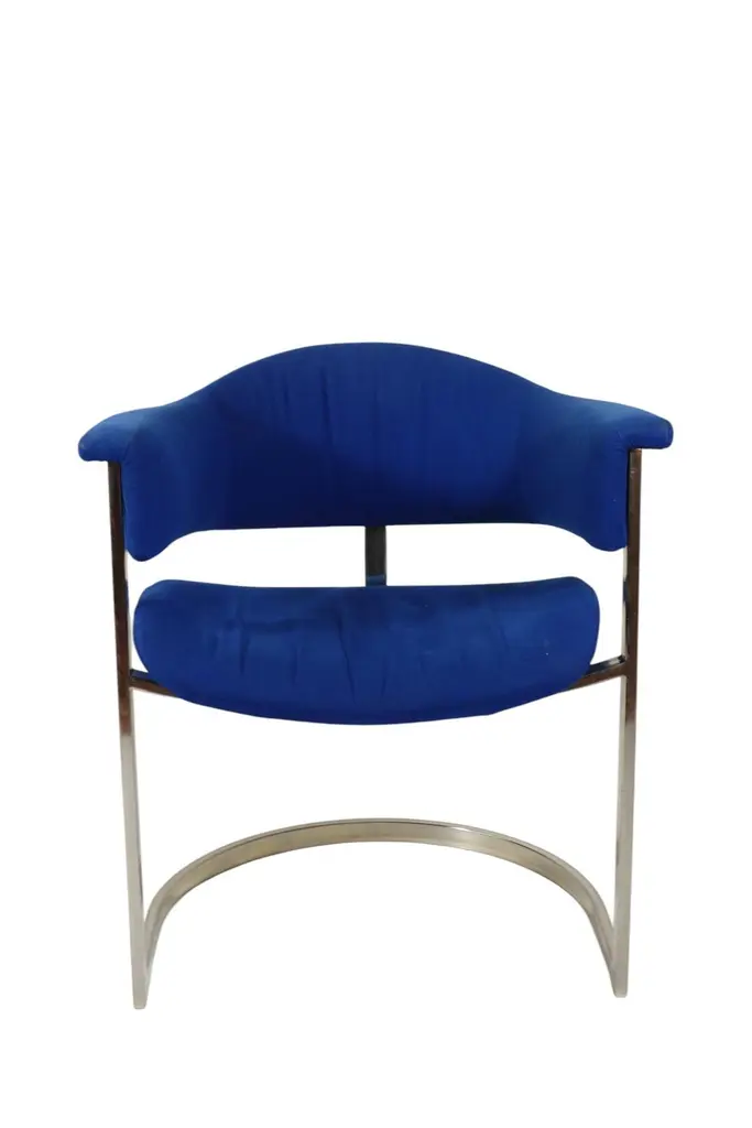 Pair of Dining ChairsDesign Vittorio Introini for Mario SabotItaly, 1970Chrome Metal FrameBlue Fabric Upholstery