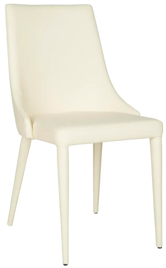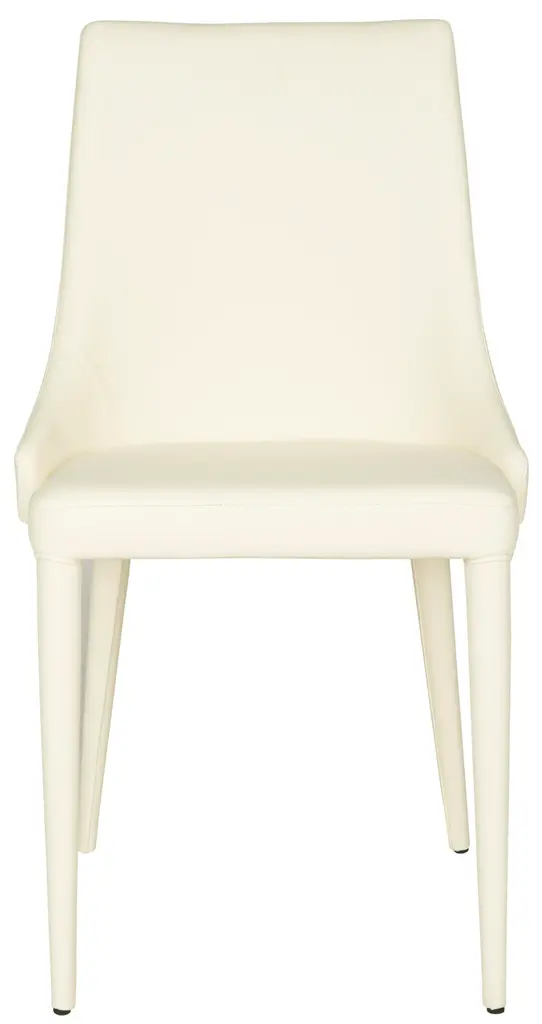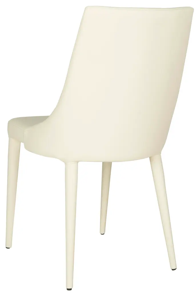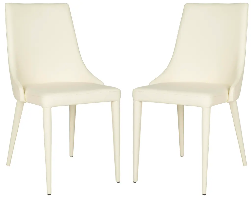 Luxe modern side chairs become ideal dining companions when crafted of easy-care PU leather in buttercream with a sturdy iron frame. This smart set of two combines the sleek style of a deco barrel chair with contemporary lines inspired by London’s skyline. To maintain use only mild soap and water with a non-abrasive clean cloth
