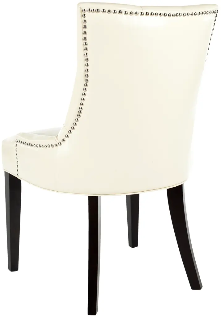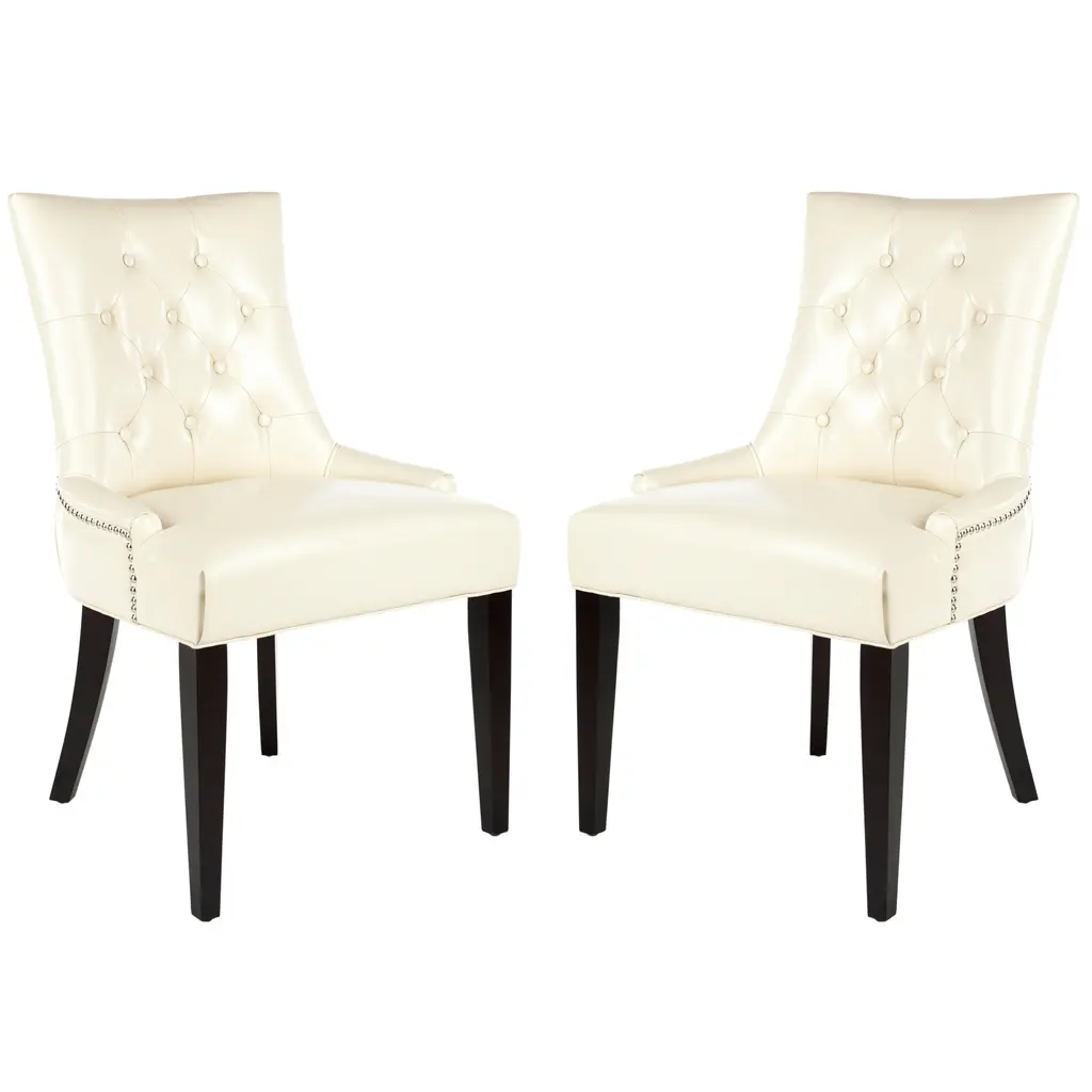 19''h Tufted Side Chairs With Silver Nailheads In Flat Cream & Espresso - A Pair