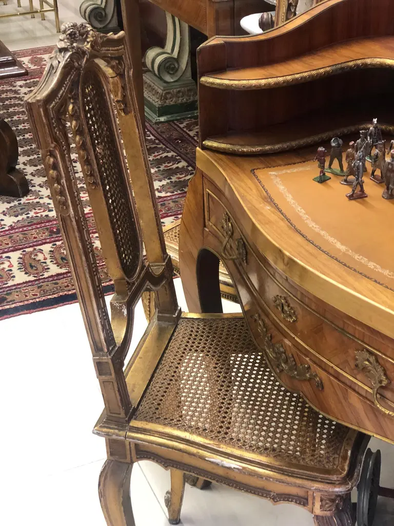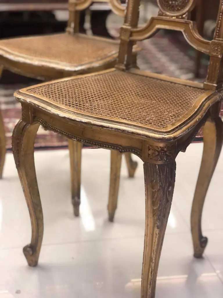 Elegant gilt wood chairs with rich floral decoration resting on curved legs in Louis XVI style.France, circa 1890.