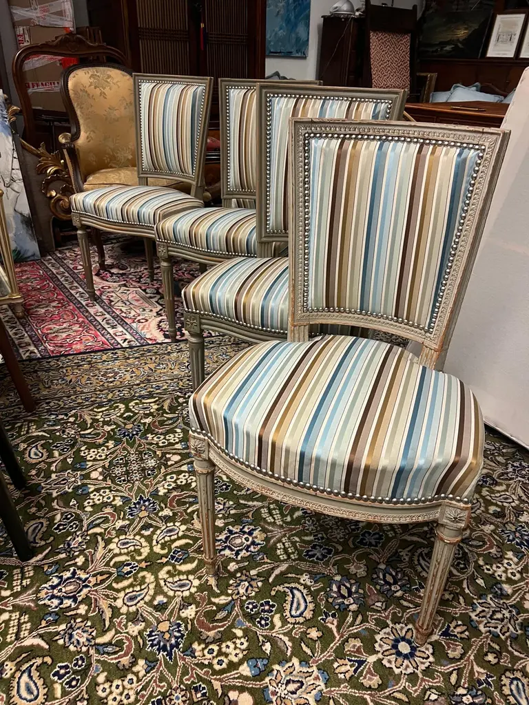 19th Century French Hand Carved Silke Dining Chairs In Louis Xvi Style