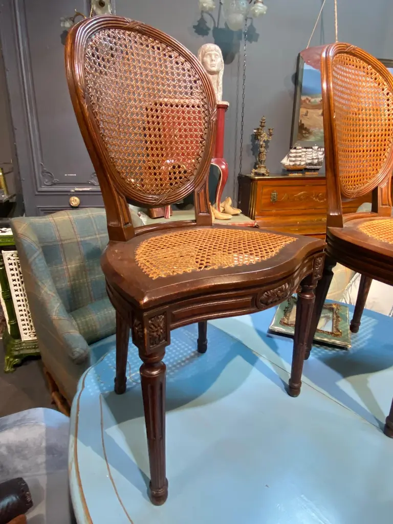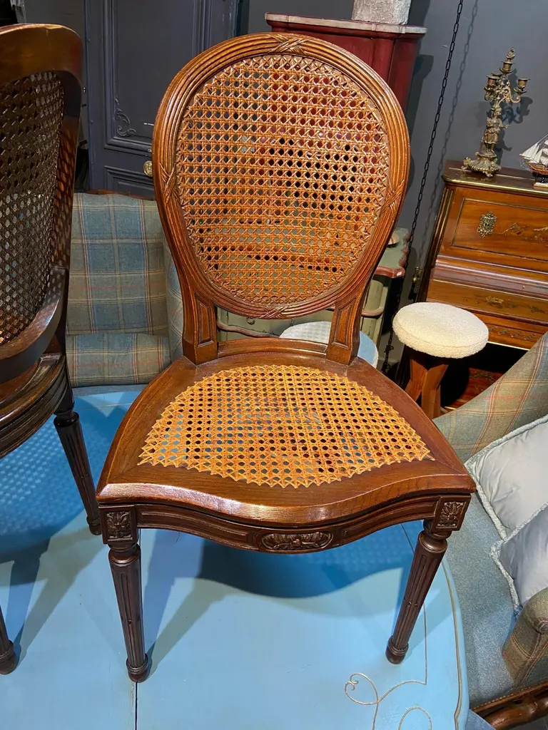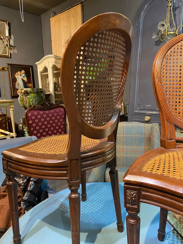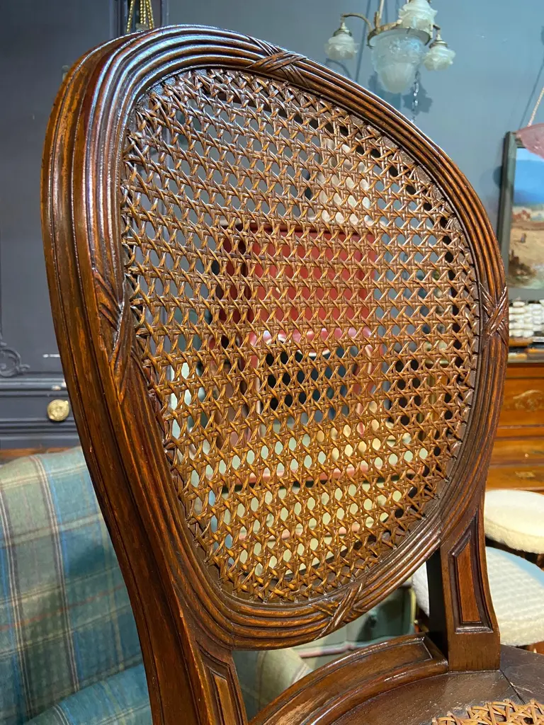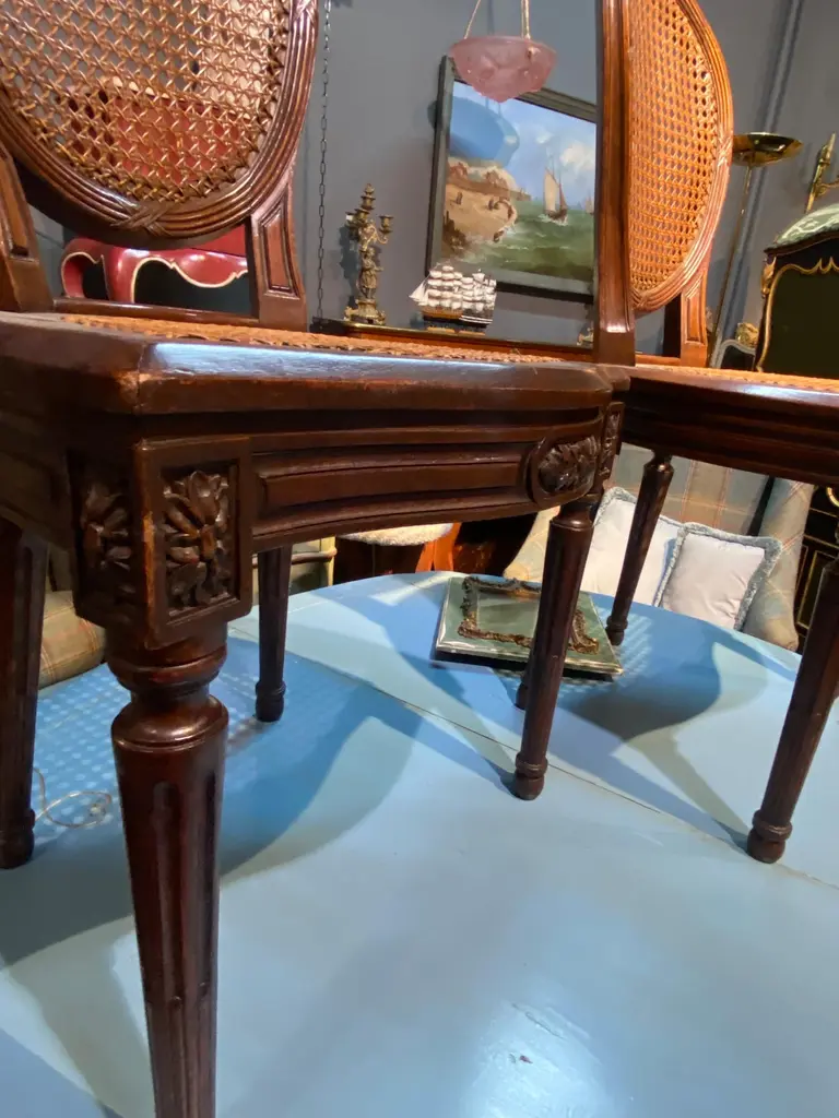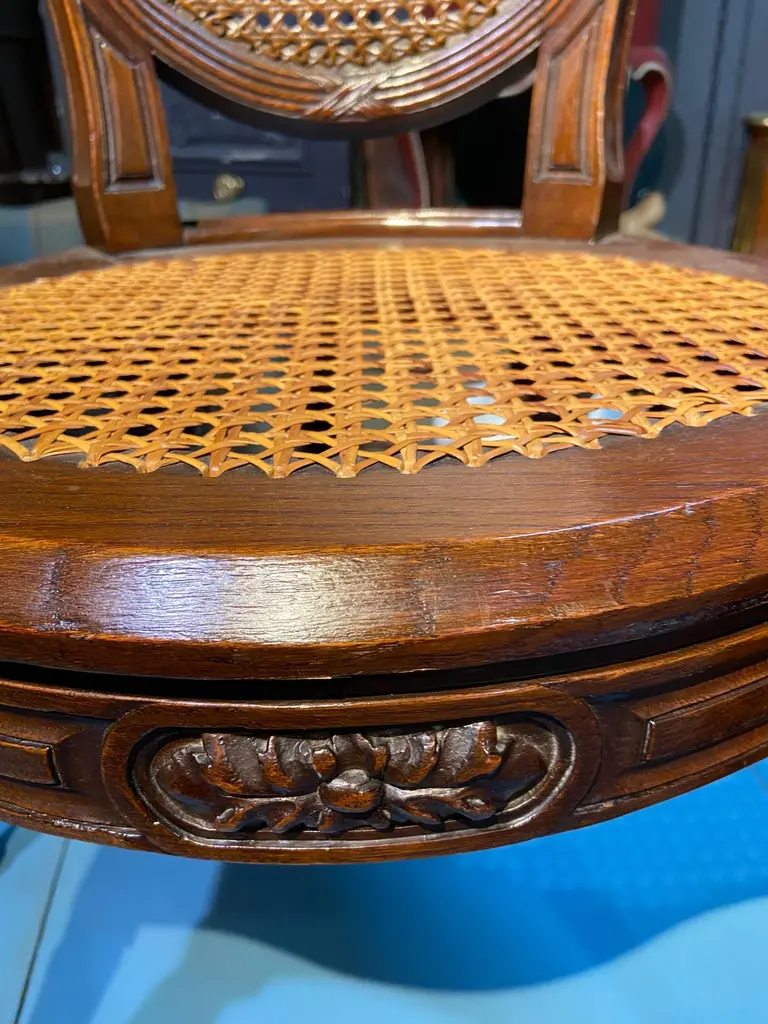 19th Century French Oval Hand Carved Walnut Cane Dining Chairs Louis Xvi Style