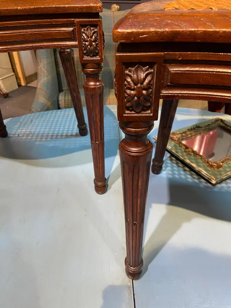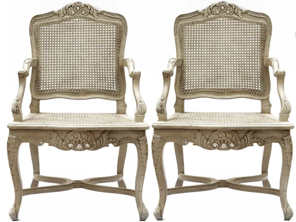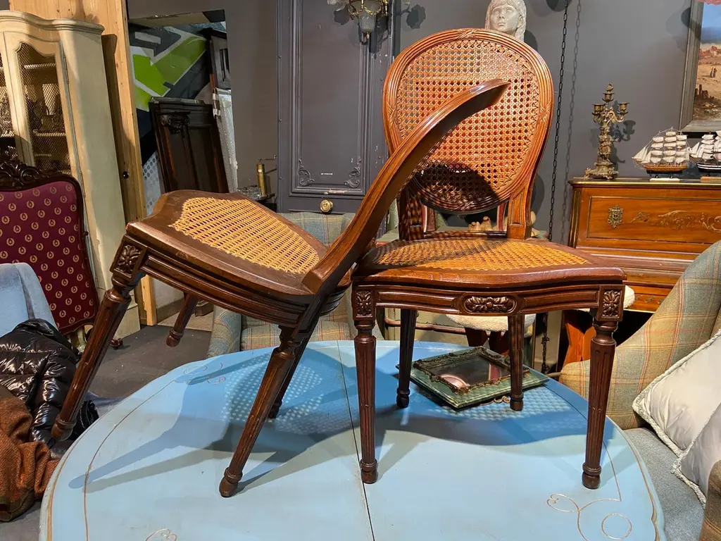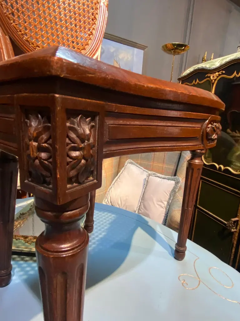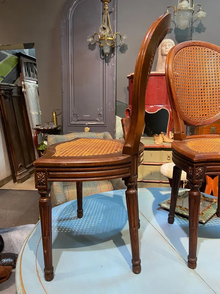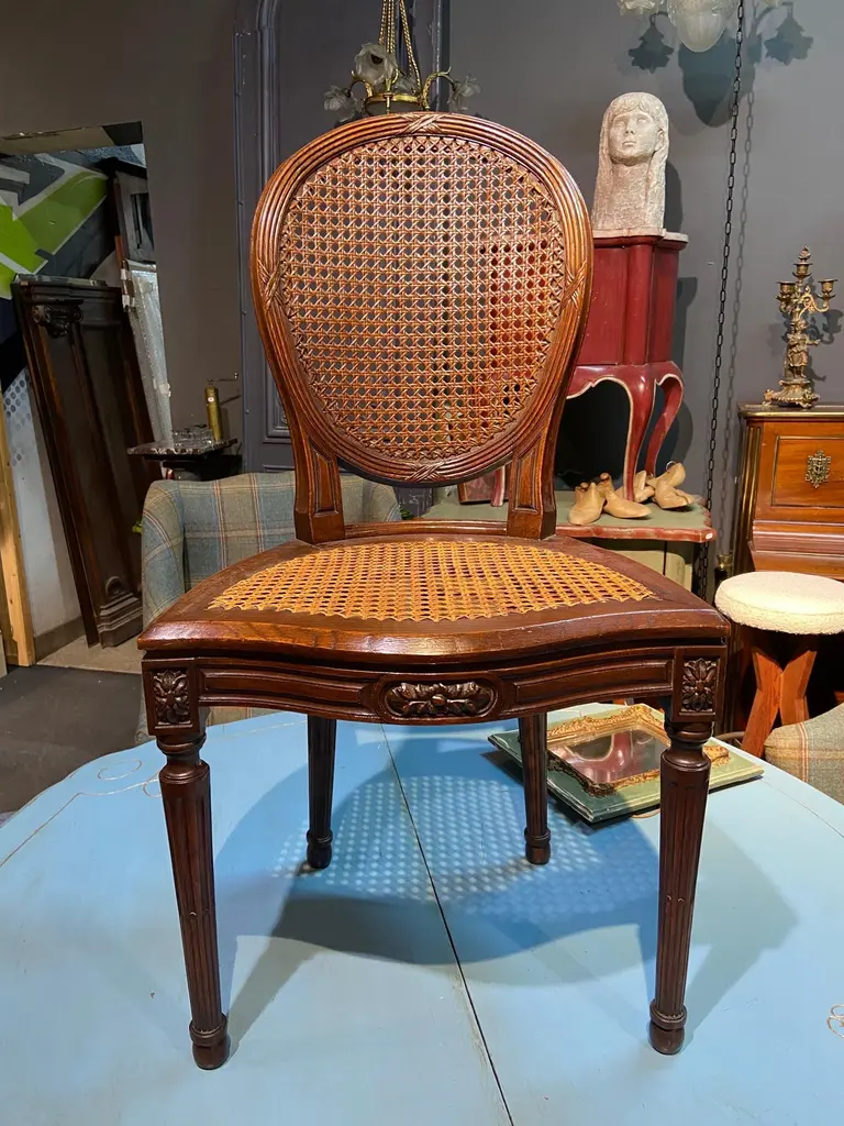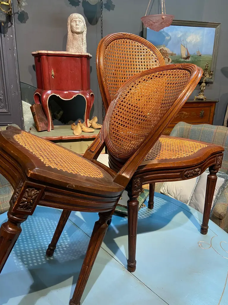 19th Century French Oval Hand Carved Walnut Cane Dining Chairs Louis Xvi Style
