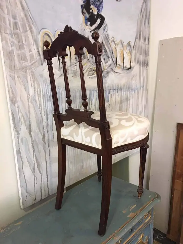 Pair of petite 19th century French beautifully carved walnut side chairs in Victorian style.Very stable and comfortable with new white upholstery,circa 1870.