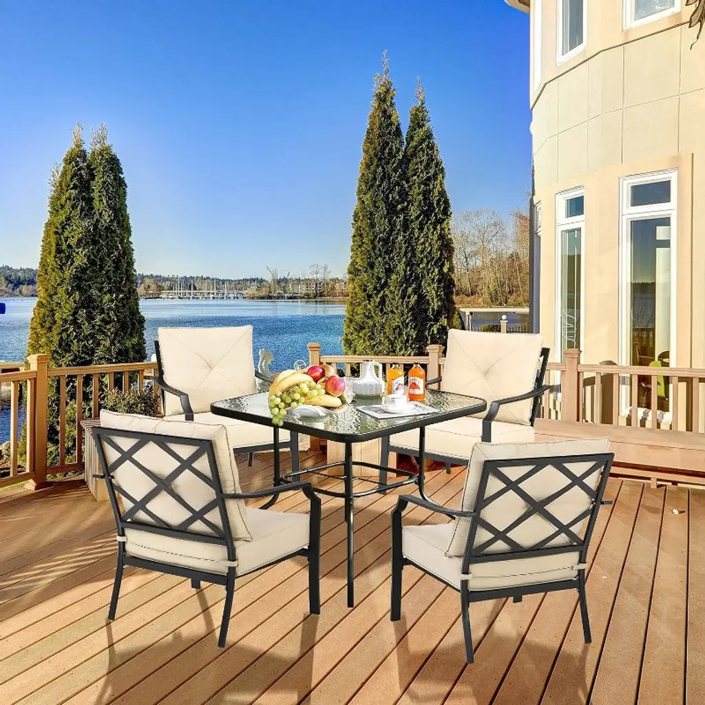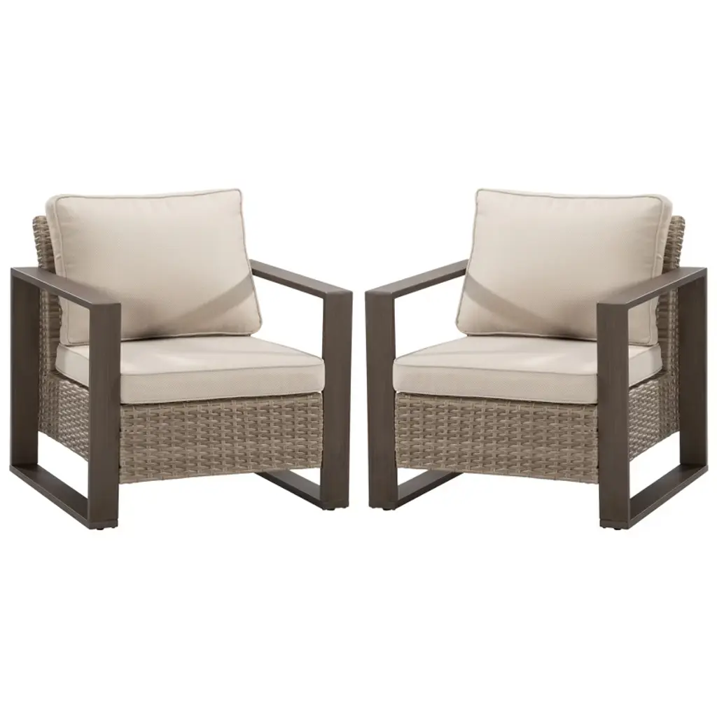 Fit your outdoors perfectly with these 2-piece patio chairs! There are 2 thickened and soft cushions for the widened seat and backrest in order to make you comfortable. The hook and loop fasteners prevent seat cushion from blowing away. Likewise, the cover of seat cushion can be removed, so you can wash it with ease. Made of rustproof iron frame, these outdoor dining chairs are suitable for outdoors, such as patio, garden, backyard and balcony, etc