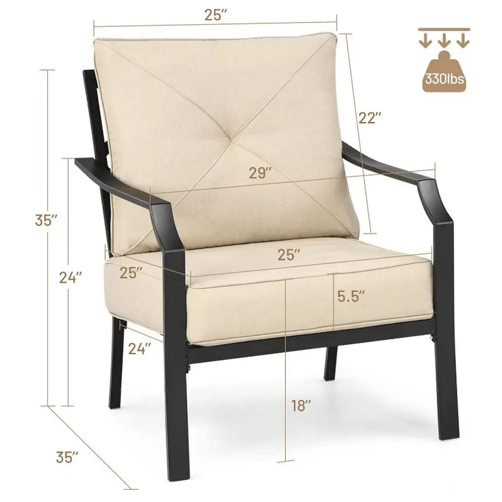 2 Pieces Patio Dining Chairs With Steel Frame, Thick And Soft Cushions