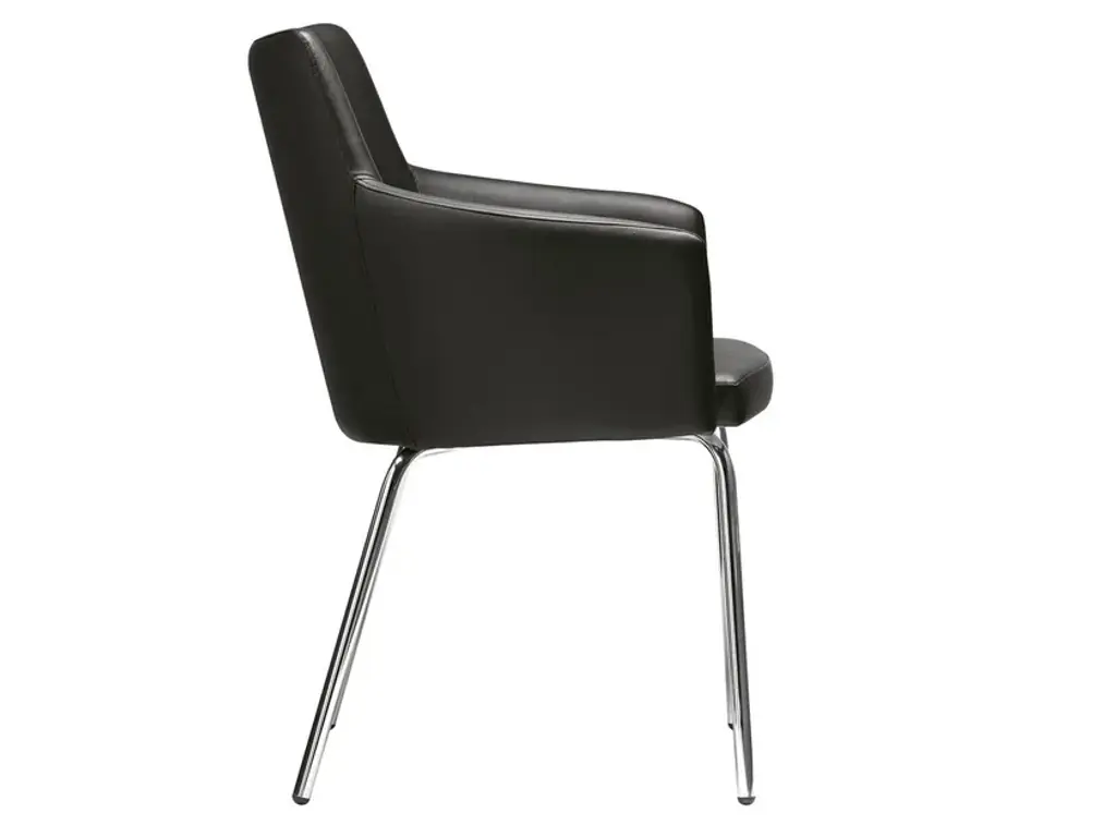 2000 Walter Knoll Art Collection Dining Arm Chair In Chromed Steel And Leather