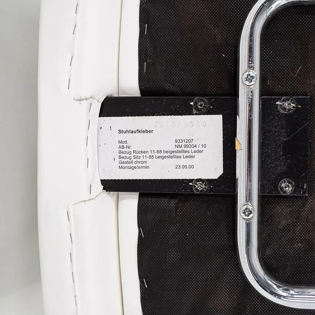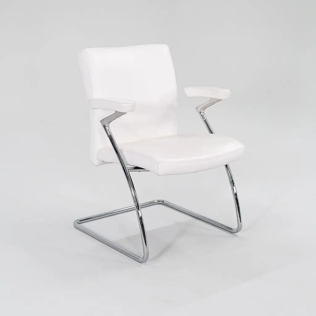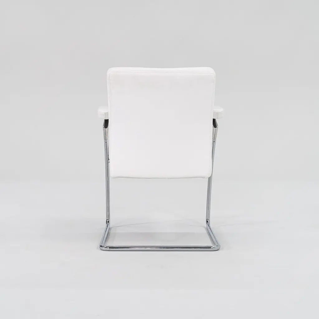 These are sophisticated modern ‘Art Collection’ armchairs, produced by Walter Knoll in Germany. These examples date to 2000. The listed price includes one chair, and we have 6 chairs available for individual purchase. Their design features a sleek chromed-steel cantilever sled base, and has upholstered arms and shell that are done in a smooth white leather. Each chair measures 24.5 inches deep, 24.5 inches wide, and 32.25 inches tall. Their seat height is 15.75 inches, and their arm rests are 24 inches high. These chairs are in great shape, having only minor scrapes and scuffs to their bases. There are some fine creases on the leather. Overall, these chairs are in very good condition with some signs of wear. Please see photos. Genuinely faulty goods will be replaced or money refunded on a case by case basis, however we must be advised of any faulty goods upon receipt of the item. It is the customer's responsibility to pay for return shipping and ship the item back to us. If the item is found to be faulty, we will also refund the postage cost. If there is no damage to the item, but a return is approved, the buyer will be responsible for both the initial and return shipping cost. It is at our discretion to refuse the refund of undamaged goods. If an order is placed and you would like to cancel the order, please notify us immediately. Any refunds will be processed via the same means that payment was made.