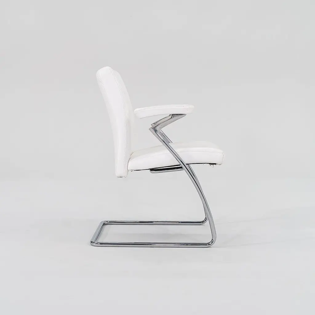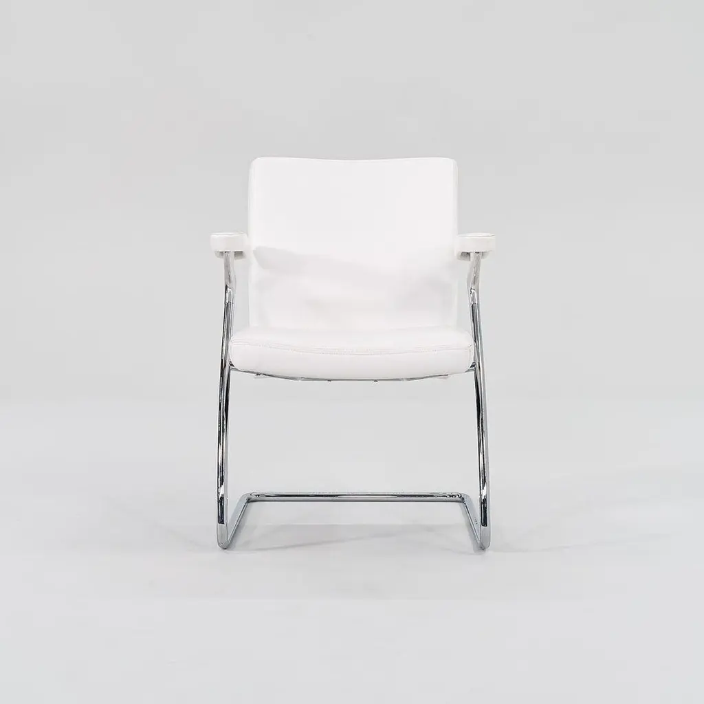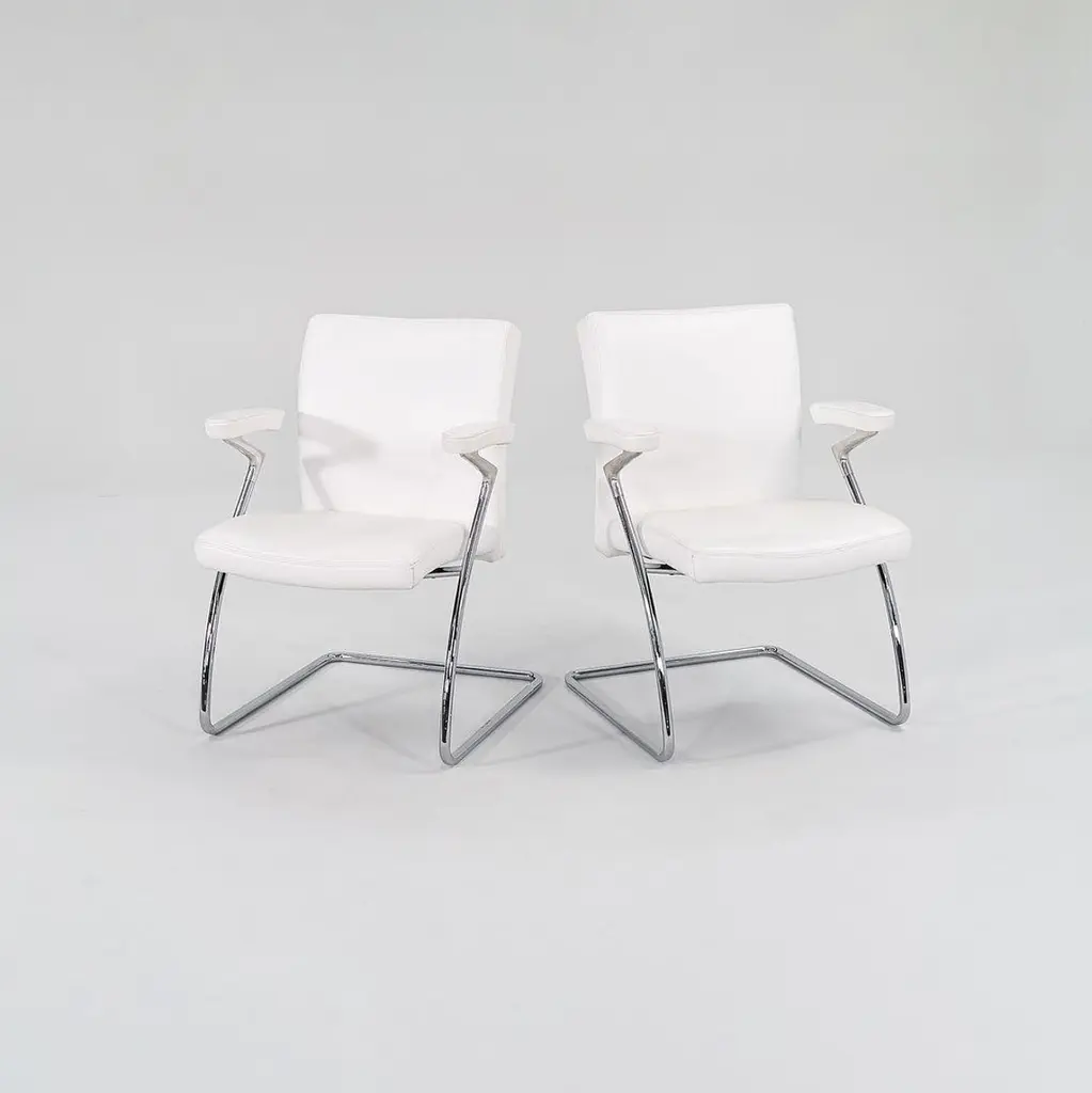 These are sophisticated modern ‘Art Collection’ armchairs, produced by Walter Knoll in Germany. These examples date to 2000. The listed price includes one chair, and we have 6 chairs available for individual purchase. Their design features a sleek chromed-steel cantilever sled base, and has upholstered arms and shell that are done in a smooth white leather. Each chair measures 24.5 inches deep, 24.5 inches wide, and 32.25 inches tall. Their seat height is 15.75 inches, and their arm rests are 24 inches high. These chairs are in great shape, having only minor scrapes and scuffs to their bases. There are some fine creases on the leather. Overall, these chairs are in very good condition with some signs of wear. Please see photos. Genuinely faulty goods will be replaced or money refunded on a case by case basis, however we must be advised of any faulty goods upon receipt of the item. It is the customer's responsibility to pay for return shipping and ship the item back to us. If the item is found to be faulty, we will also refund the postage cost. If there is no damage to the item, but a return is approved, the buyer will be responsible for both the initial and return shipping cost. It is at our discretion to refuse the refund of undamaged goods. If an order is placed and you would like to cancel the order, please notify us immediately. Any refunds will be processed via the same means that payment was made.