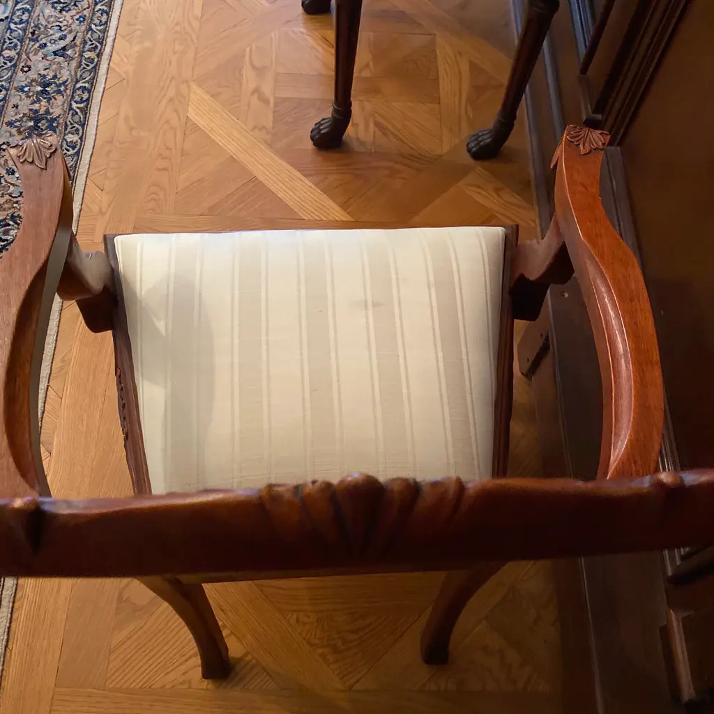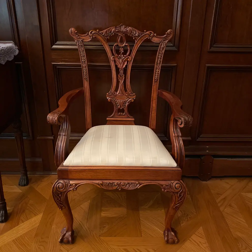 Beautiful ornate set of dining or accent chairs. Ball and claw design. 2 total Heavy wood frame.