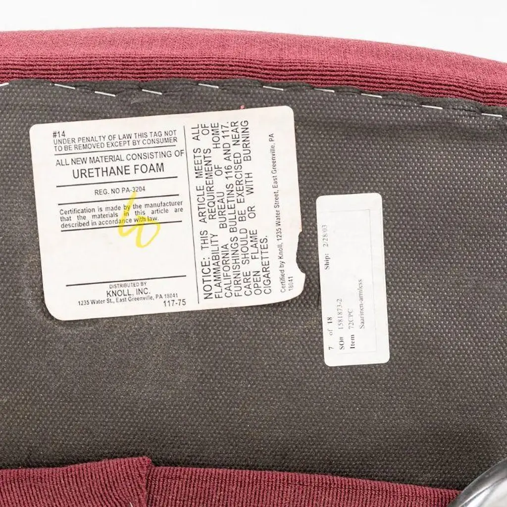 2003 Knoll Saarinen Armless Executive Side Chair In Bordeaux Fabric, Model 72c