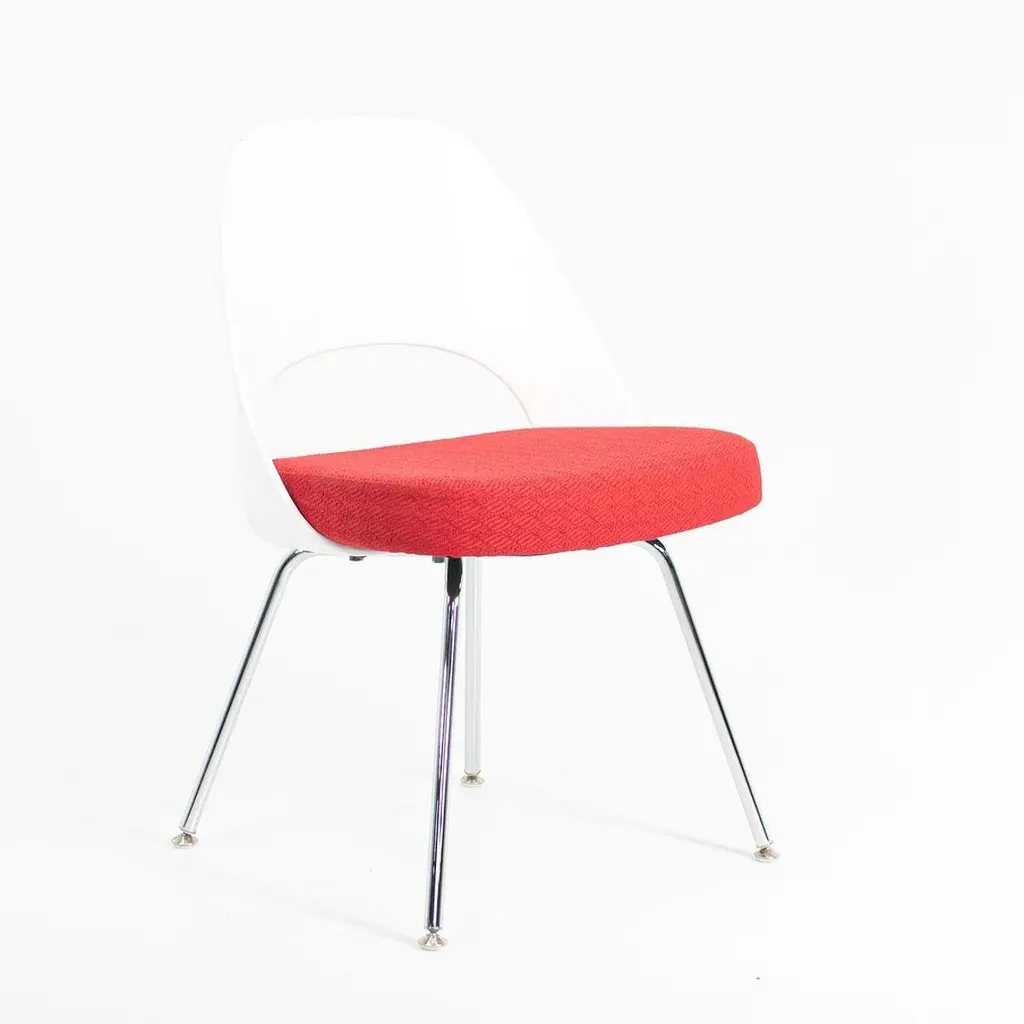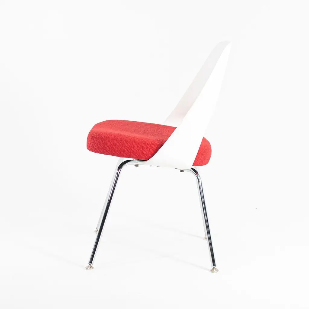2011 Eero Saarinen Executive Side Chairs In Red Fabric W/ White Plastic Backs