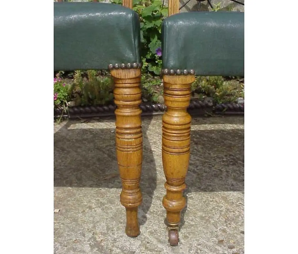 22 X Aesthetic Movement Oak Upholstered Dining Chairs With Turned Front Legs