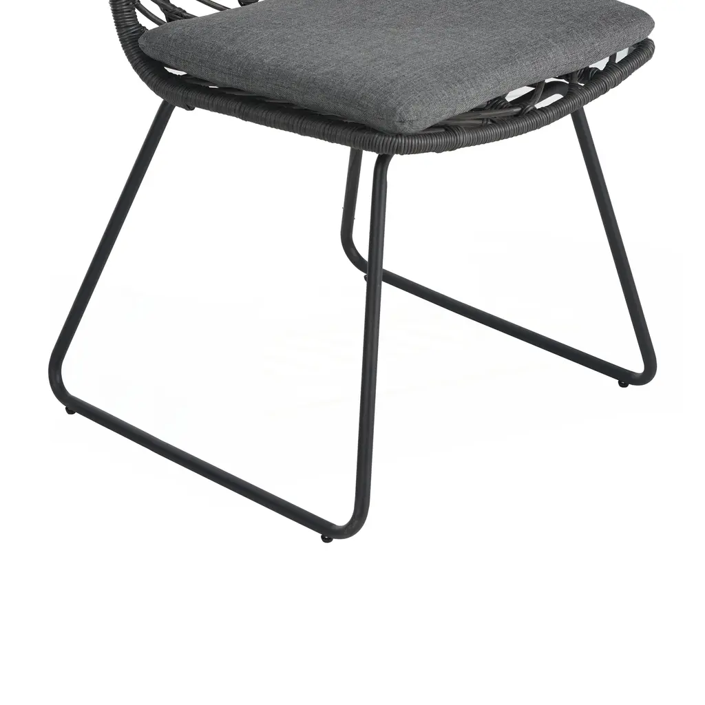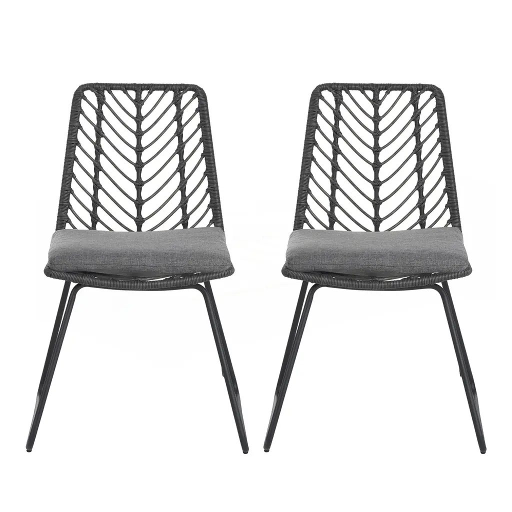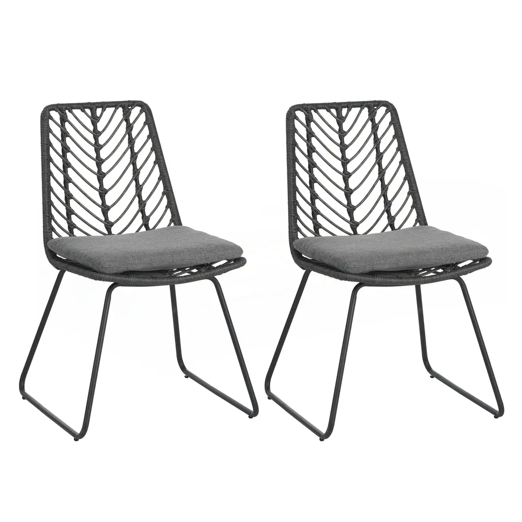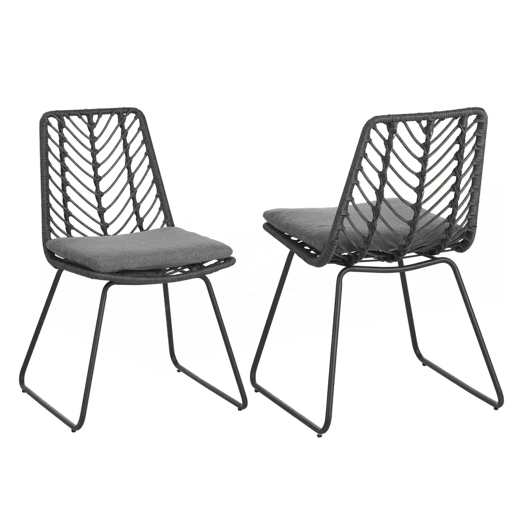 Transitional Rattan Dining Chairs - Timeless Outdoor EleganceKey Features 1. Sophisticated Transitional Design Blends modern minimalism with classic rattan texture for versatile styling Neutral gray finish complements: ✓ Contemporary patios ✓ Coastal-themed decks ✓ Urban balcony gardens Set of 2 chairs creates instant coordinated seating 2. Premium Material Composition Component Specification Frame Powder-coated iron core (rust-proof) Wicker Handwoven polyethylene rattan (UV-resistant) Cushions Water-resistant polyester (spot-clean only) 3. Space-Smart Functionality Compact 20.5"W × 24.2"D footprint fits small spaces 300 lb weight capacity with reinforced leg joints 10-minute assembly per chair (tools included) Technical Highlights Seat Height: 18.5" (standard dining ergonomics) Weight: 9.7 lbs/chair (easy to reposition) Best For: Breakfast nooks, apartment balconies, poolside dining Style Tip: Layer with linen table runners and terracotta planters for Mediterranean flair.Care Instructions Monthly: Brush rattan with soft-bristle attachment Spills: Blot immediately with damp cloth (no harsh cleaners) Storage: Cover during monsoons or store indoors Set Includes 2 rattan dining chairs Assembly hardware + illustrated manual Cushions pre-attached with hook-and-loop fasteners (Note: Natural variations in handwoven texture enhance artisanal charm)