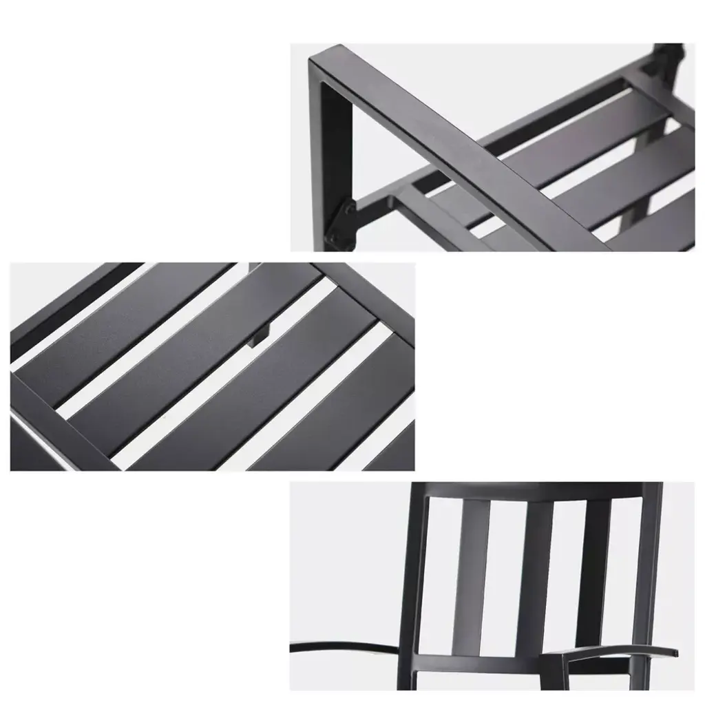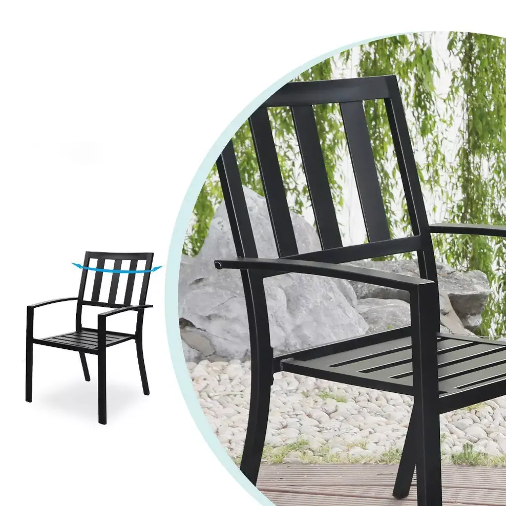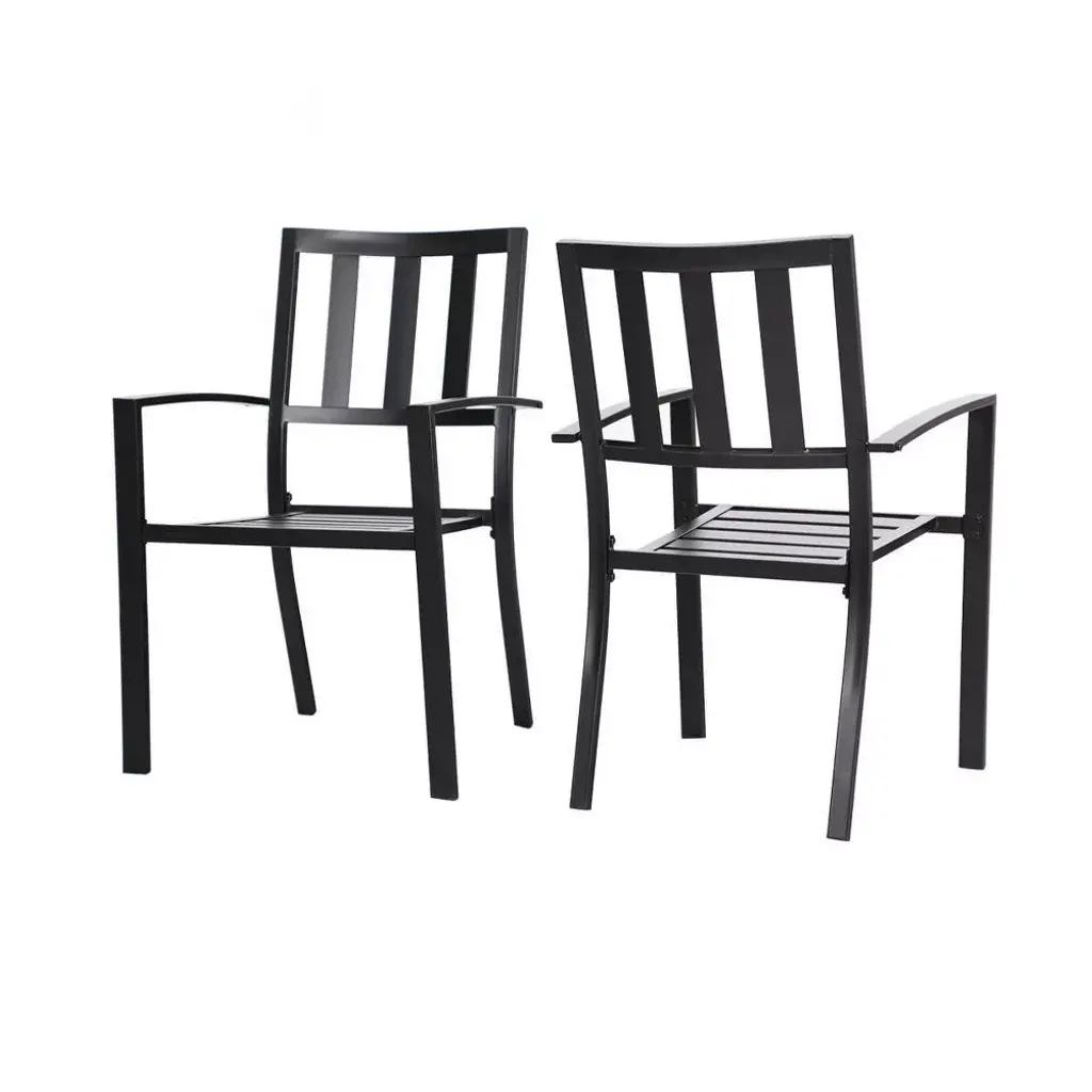 [CAPTIVA DESIGNS] Elevate your seating experience with our 2pc Patio STACKABLE Metal Dining Chairs. These high-quality metal chairs offer spacious, comfortable seating, ideal for extended use and chilly weather with the option to add cushions. Their heavy-duty yet lightweight frame, featuring an angled back for supreme comfort, supports up to 300lbs and is protected by a durable powder-coated cover that promises over 2 years of rust and paint loss resistance. Assembly is hassle-free with included hardware and instructions. Whether indoors or outdoors, these versatile chairs fit any occasion, providing both style and comfort for long-lasting enjoyment.FEATURESConvenient Storage - STACKABLE design for easy storage in any space.Heavy-Duty Lightweight Frame - Sturdy lightweight frame.Easy-Clean Slat Back - Low-maintenance slat design.Durable Powder-Coated Cover - Rust-resistant powder coat.Versatile Indoor and Outdoor Use - Suitable for any occasion.SPECIFICATIONDimensions (Overall): 35"H x 22.4"W x 25.0"D, 20.0" (seat back height)Seat Dimensions: 19.5"W x 18.0"D, 16.5" [floor to seat top]Floor to armrest: 25", Weight: 15 PoundsPackage Includes2 x armrest chairsInstruction Manual (come with each box)Tips: Allow all the holes in the section to line up correctly and then tighten the screws. Assembly: 25 minutes to set up the chairs.