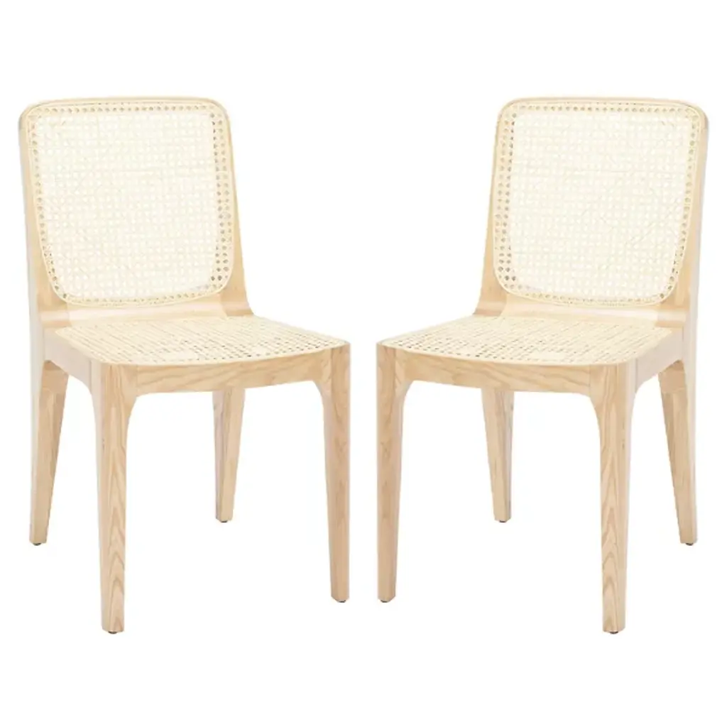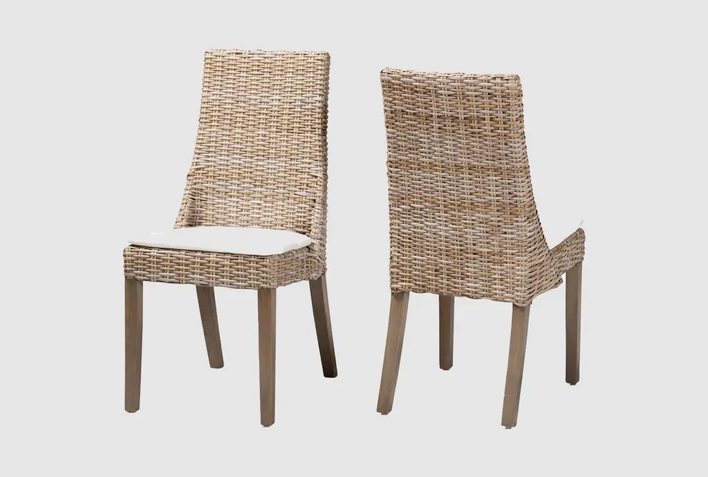 Looking to add some extra seating to your dining area? This Set of Two Temescal Valley Wood and Woven Dining Chairs with Cushions from Threshold™ makes the perfect pick. These dining chairs come with a hardwood frame and a woven seat and back, plus a cream tie-on cushion to provide comfort, and the neutral color scheme makes it easy to coordinate with your existing decor. With an armless construction and slightly flared legs, these charming chairs make a versatile addition that easily elevates the rest of your dining decor.Threshold™: Quality & Design / Casual classics for house and home."Overall Width: 17.875 inchesOverall Depth: 21.25 inchesOverall Height: 32.5 inchesSeat Height: 19 inchesSeat Depth: 17.125 inches"