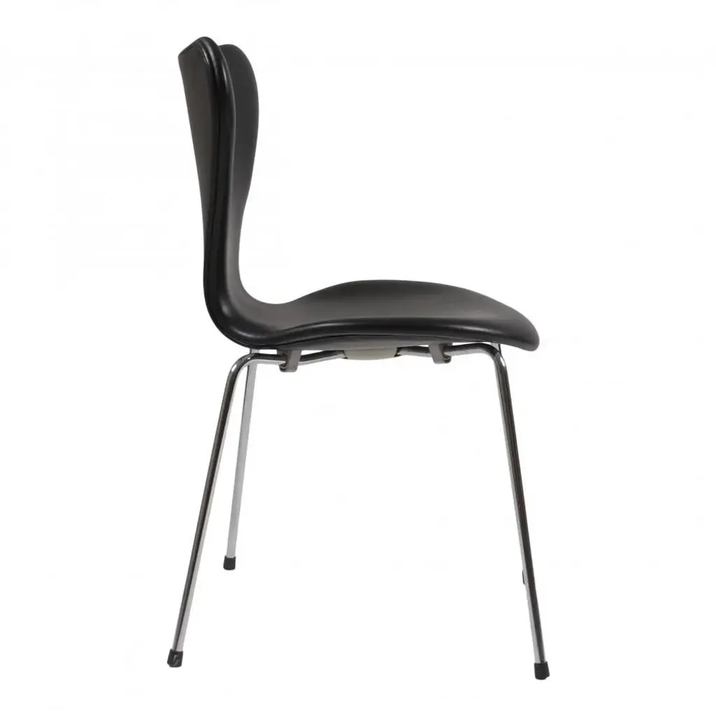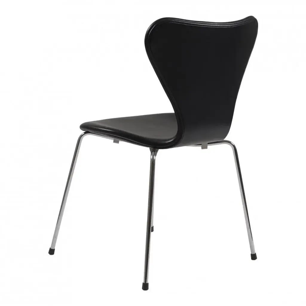 3107 Chair In Black Leather By Arne Jacobsen For Fritz Hansen