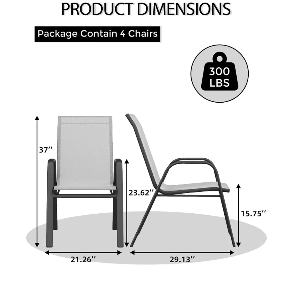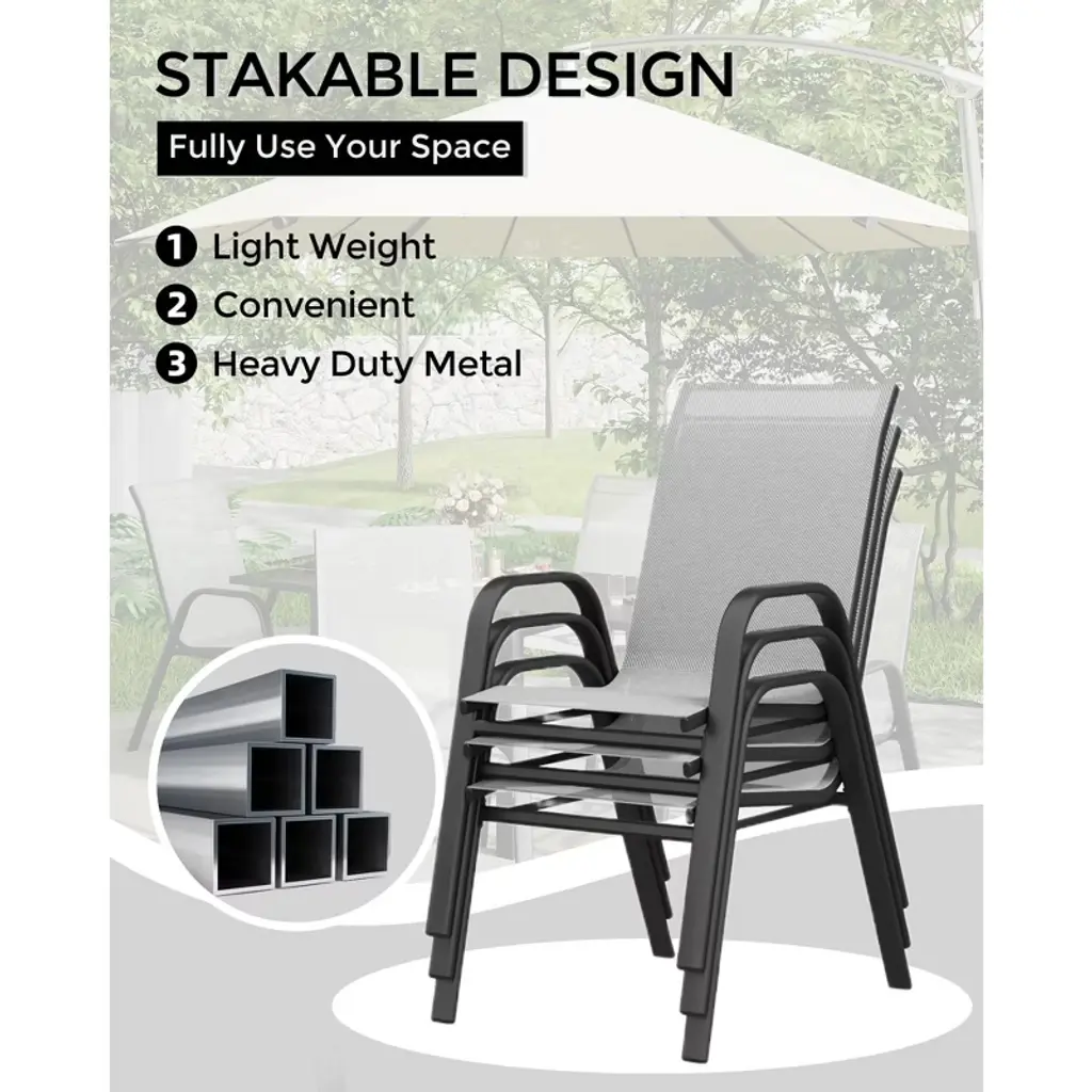 4 Pcs Patio Stackable Dining Chairs, Outdoor Stacking Chairs With Breathable Textilene Fabric & Metal Frame, Outdoor Dinning Seats