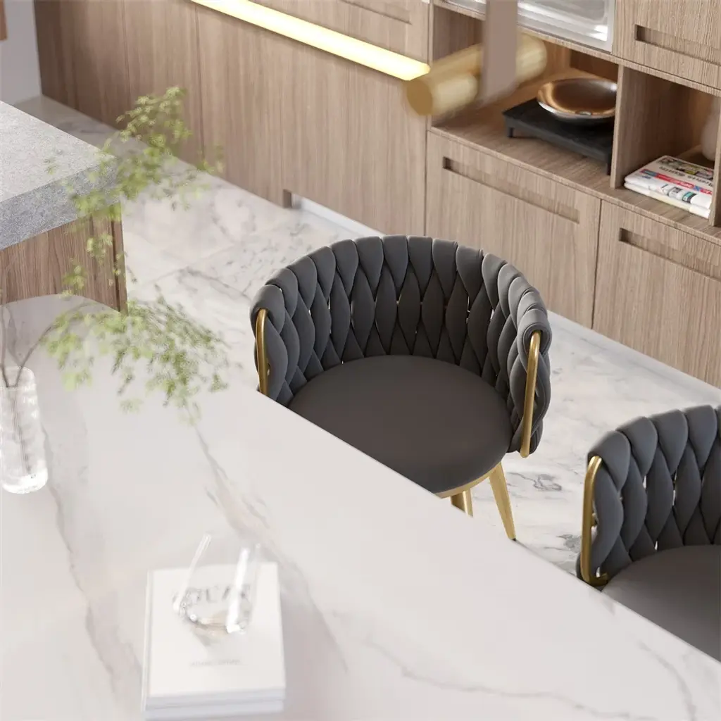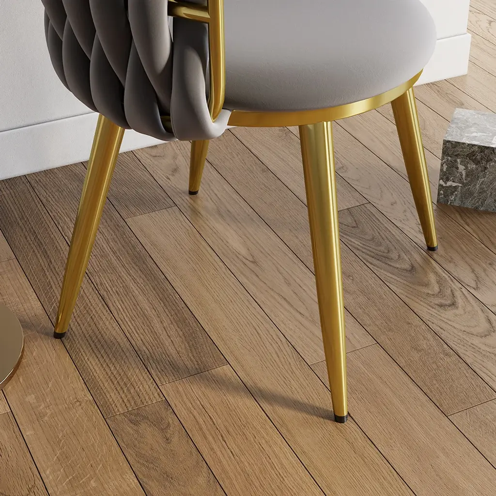 Boasting clean lines and a sleek modern look, this dining chair makes an ideal focal point in your space. It features a barrel back with velvet upholstery that offers statement-making appeal. Padded with high-density foam padding, this chair cradles you in comfort while you enjoy a meal with friends.