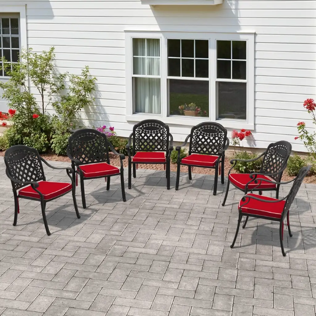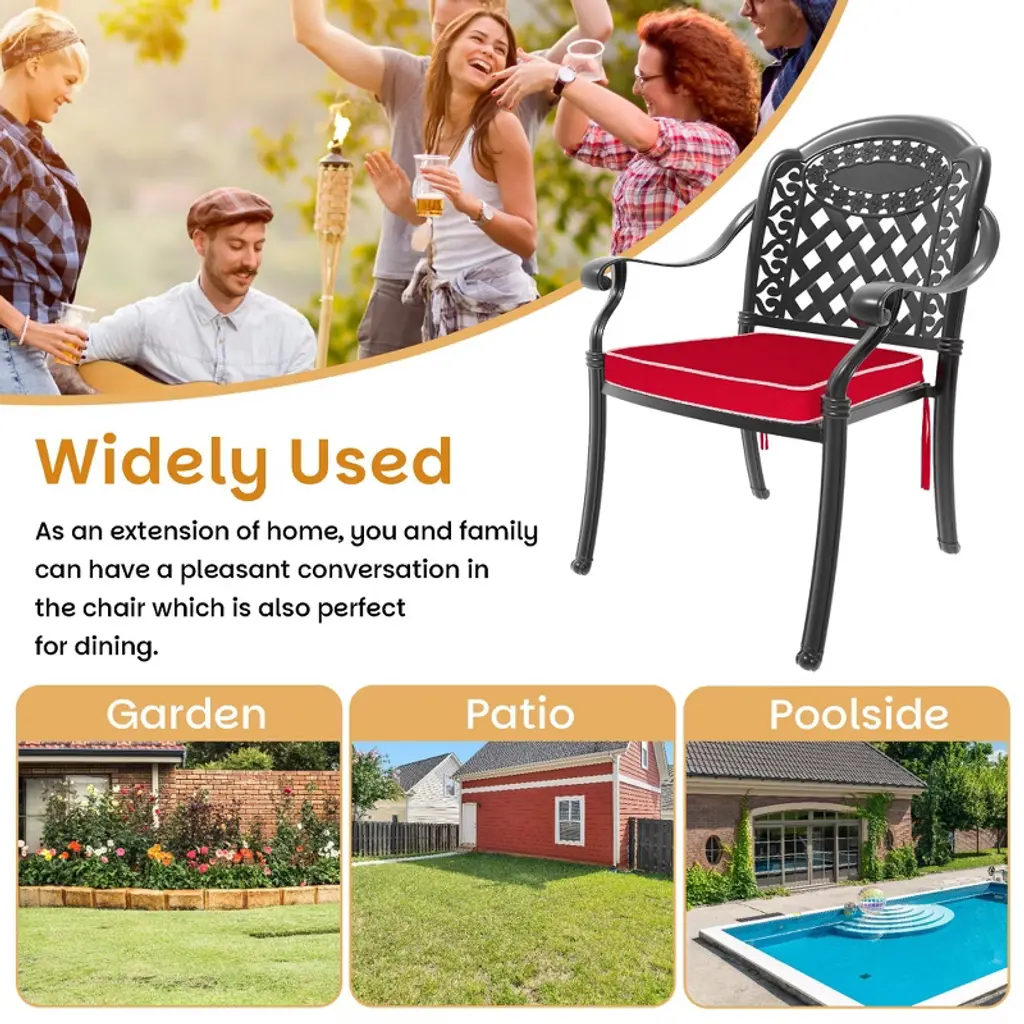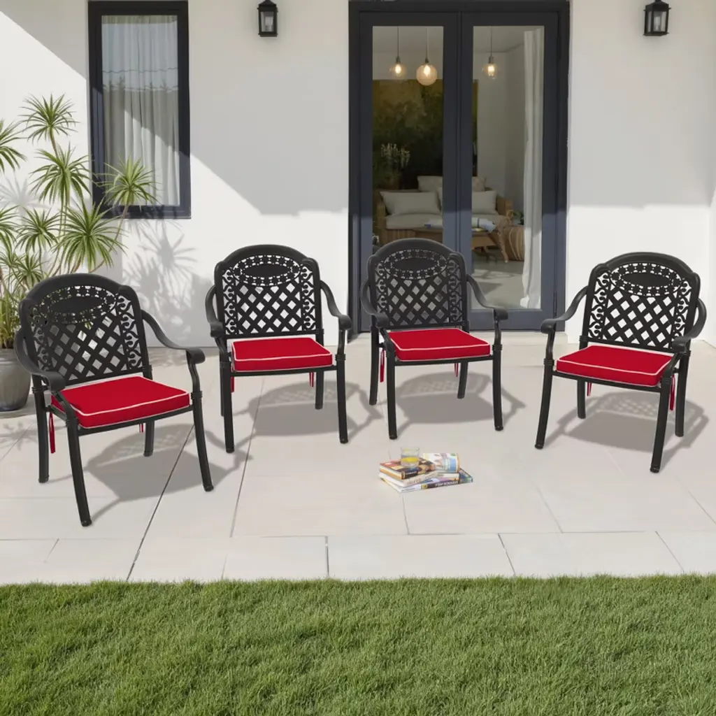 4Pcs Cast Aluminum Patio Stacking Armchair With Black Frame And Cushions In Red Colors