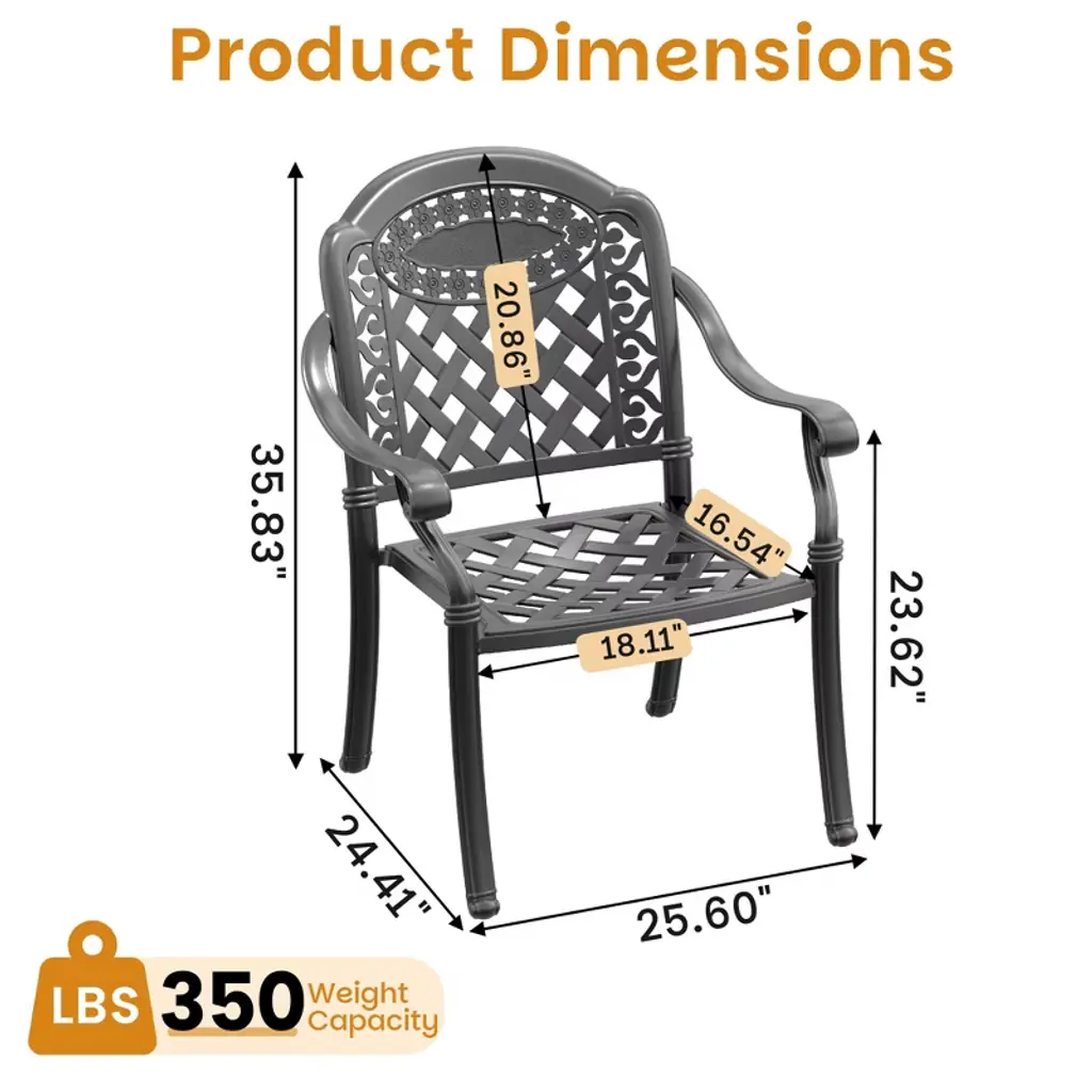 What's Included? ✔ Chair ✔ Cushions Sitting on these dining chairs and enjoying a morning coffee, or gathering with friends on the terrace or in the garden for outdoor activities, brings indescribable joy. The chairs and backrests feature various patterns such as petals and rectangles, showcasing elegance and beauty. The slightly concave seats conform to the body's contours, complemented by curved armrests, allowing you to fully embrace outdoor living on sunny days. Whether placed next to your backyard terrace or garden, it creates a stylish and comfortable relaxation space. Its elegant appearance fosters a cozy dining and conversational atmosphere, delivering a wonderful outdoor experience.