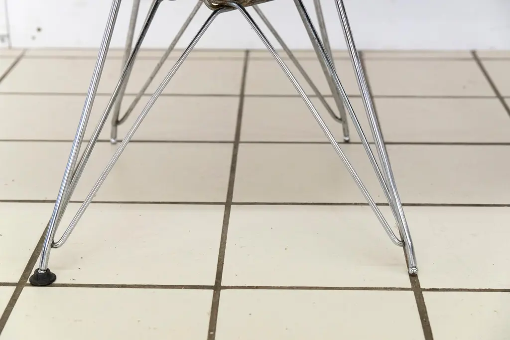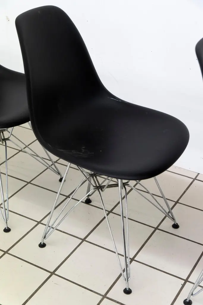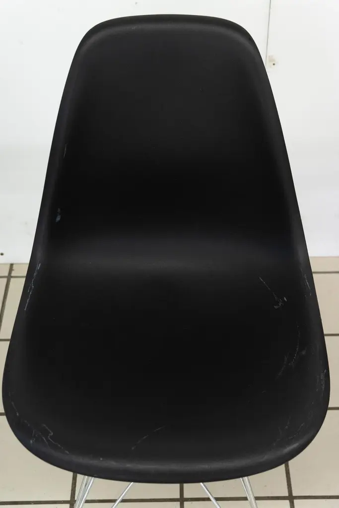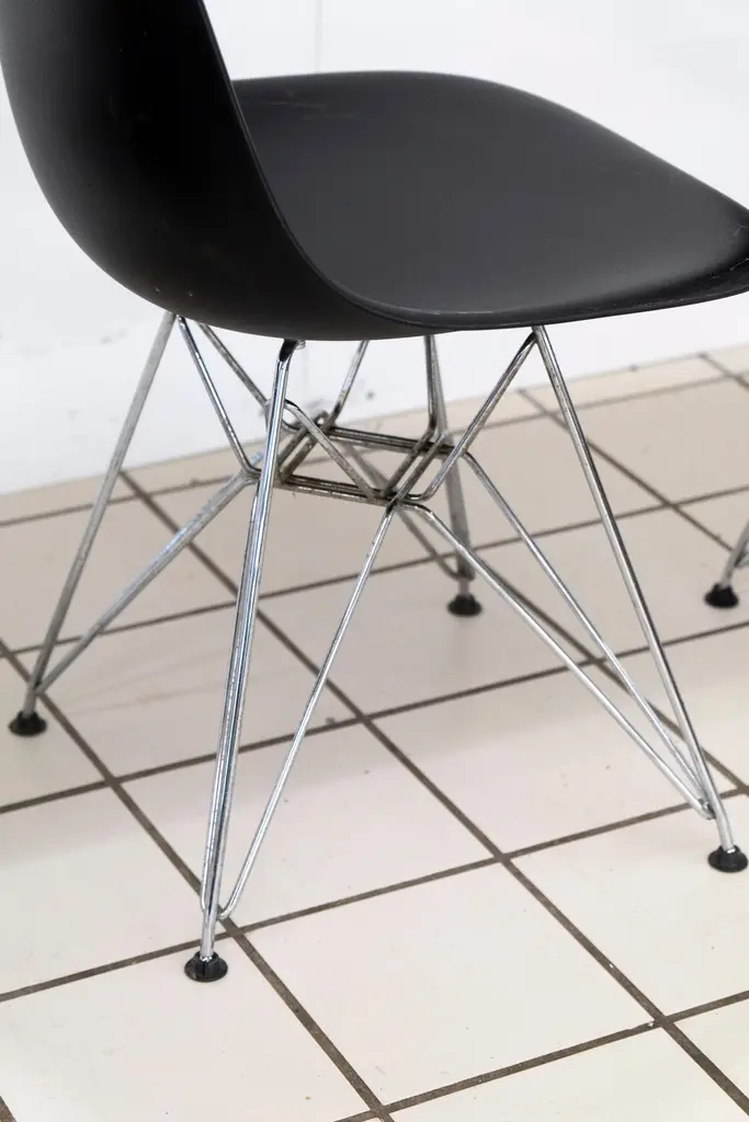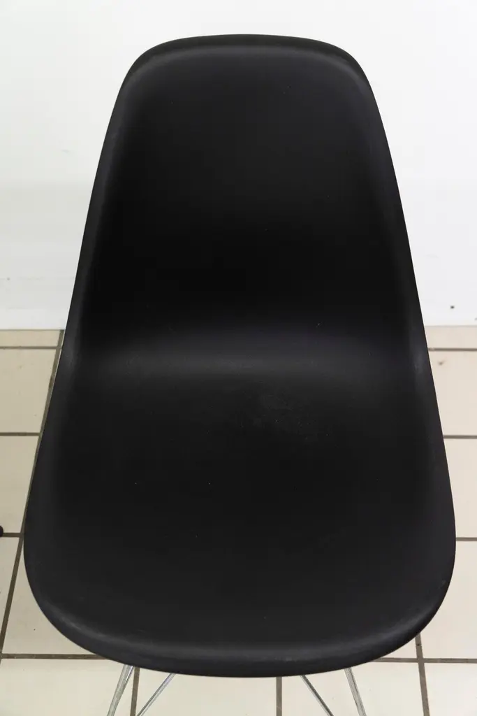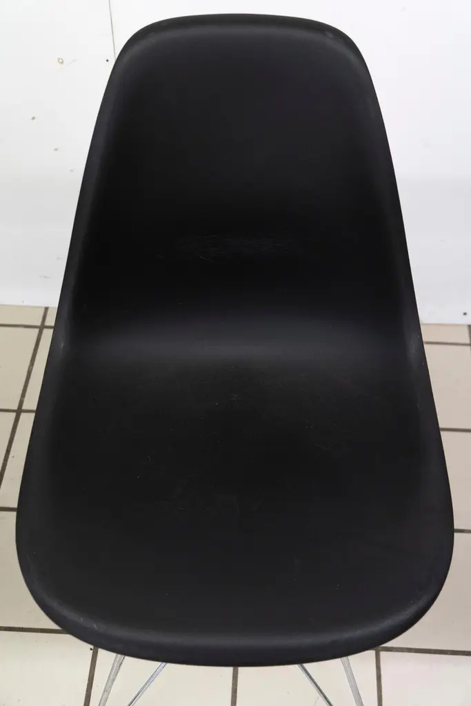 The DSR Chair (Dining Side Rod Base) by Charles and Ray Eames, produced by Vitra, is a quintessential piece of mid-century modern design. Featuring the Eames’ signature molded seat in black, the chair is supported by a distinctive chromed steel rod base. Known for its simple elegance and ergonomic comfort, the DSR chair blends form with function, making it ideal for both dining rooms and contemporary office spaces.Designed in 1950 as part of the Eames Molded Chair Series, this iconic piece has remained a symbol of innovative design and high-quality craftsmanship. The Vitra production ensures durability and attention to detail, preserving the integrity of the original design while offering modern-day comfort. With its sleek lines and timeless aesthetic, the DSR continues to be a favorite for design enthusiasts and collectors alike.