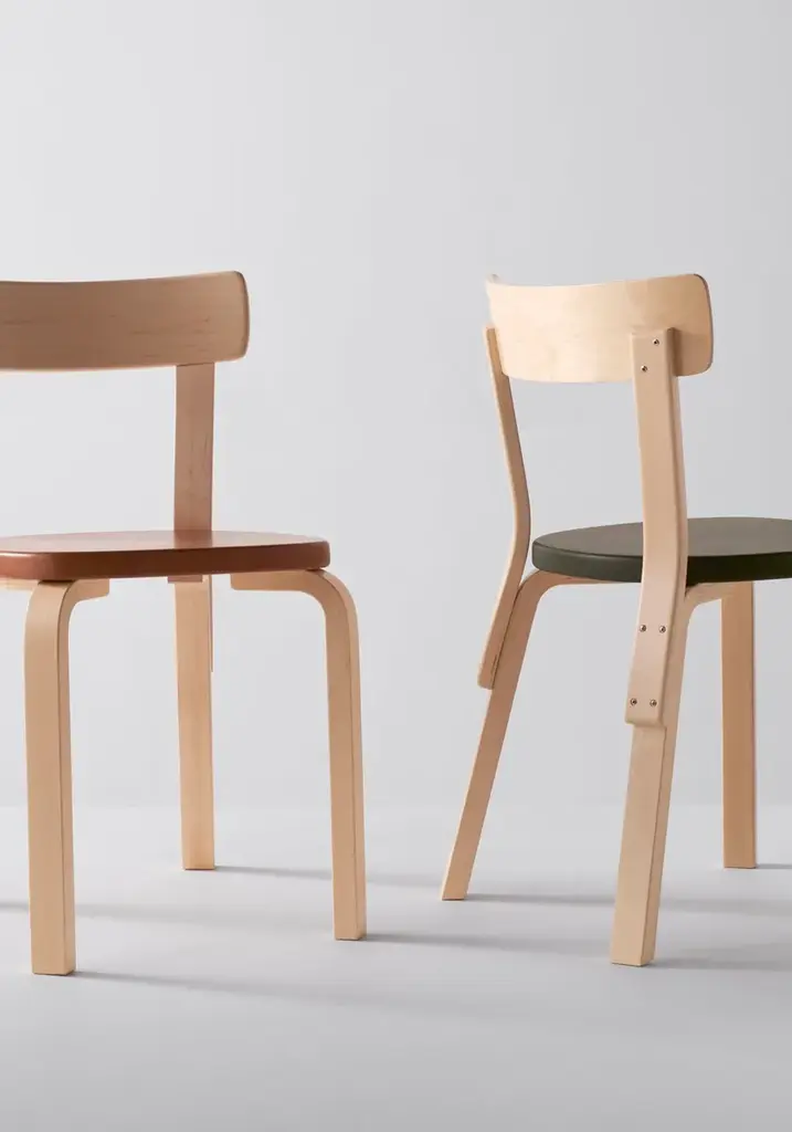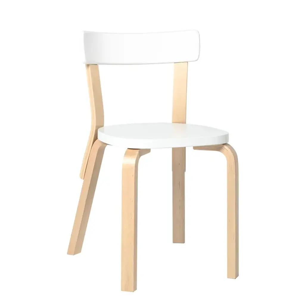 Chair 69 is one of Artek’s most popular chairs, a universal wooden chair in the tradition of classic kitchen and café chairs. With a broad seat and supportive backrest, Chair 69 exudes durability and stability while retaining an elegance of line. Available in a variety of colours and finishes.Legs and seat edge-band: Solid birchChair 69 is available in several colour versions.