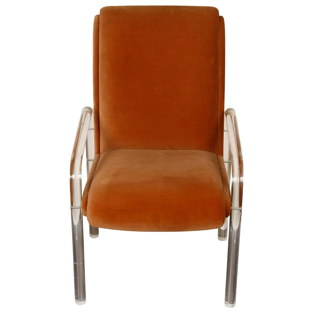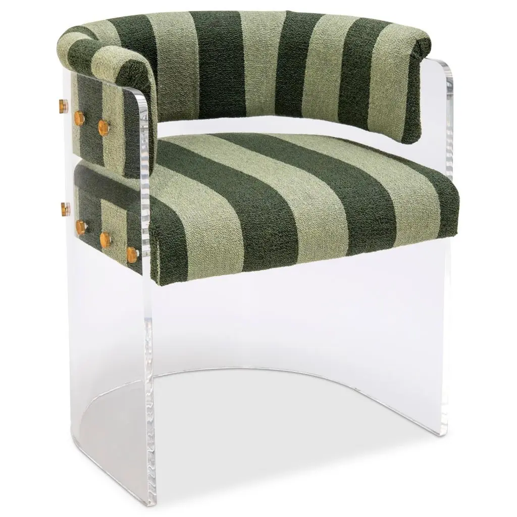 70’s Retro Style Space Age Acrylic Dining Chair, Striped Bouclé Upholstery