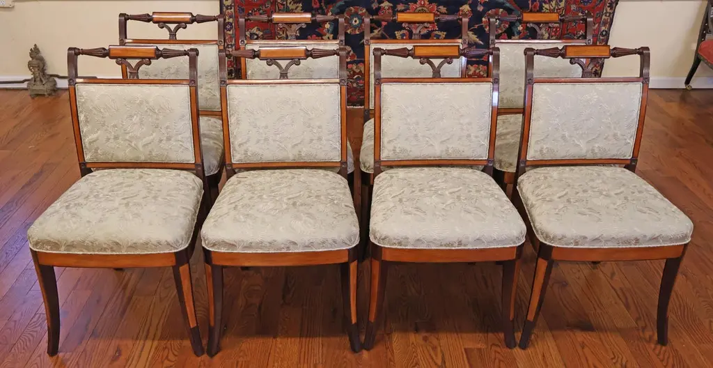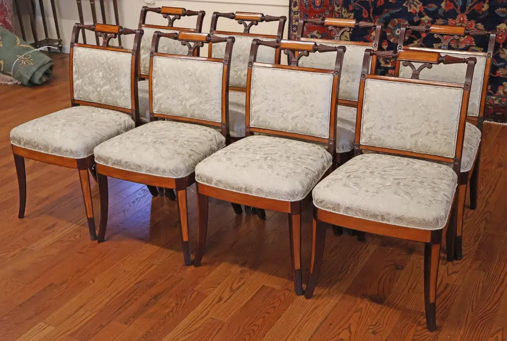 8 Kindel Winterthur Collection Mahogany And Maple Inlaid Seymour Dining Chairs