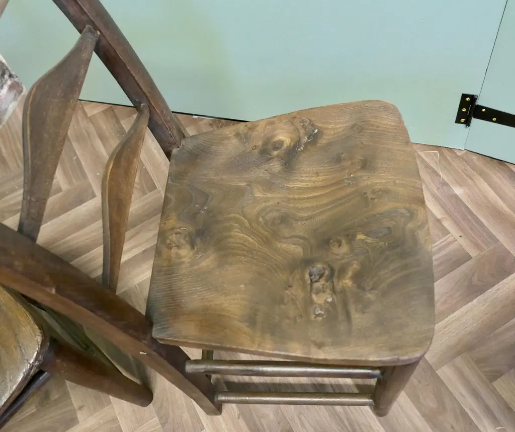 A Good sturdy set of 10 Victorian Chapel ChairsThe chairs have 1” thick solid elm seats nicely shaped for comfort with beech legs and stretchers, they have a broad top rail back rest This is a very sturdy set of chairs, they have a good patina and are completely original, they have not been stripped and are very sturdyThe chairs are 31” high at the back, 15” wide and have a 17” seat heightTHW27