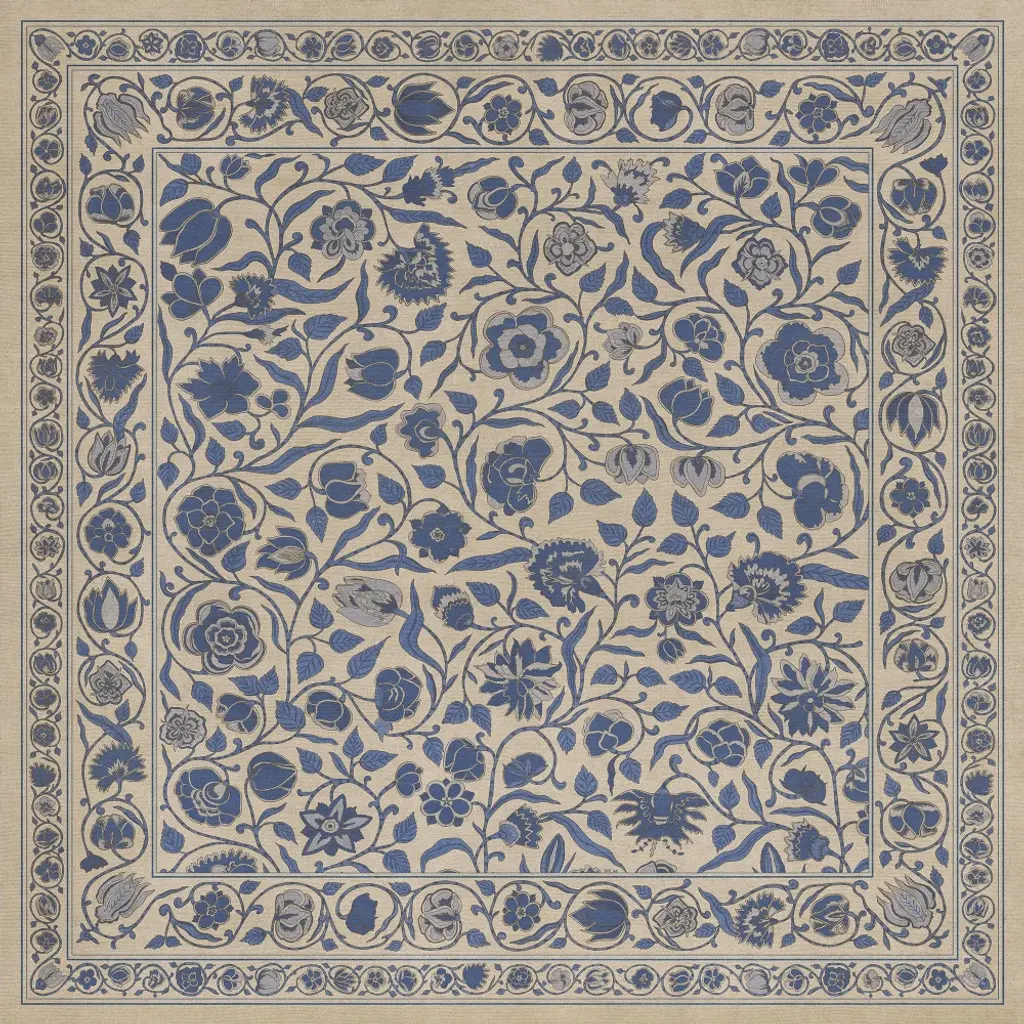 Inspired by old floor mats and vintage linoleum, these vibrant floral vinyl floor cloths offer warm colors with beautiful aged characteristic. Their worn appeal makes them great in kitchens and baths, while the smooth surface is perfect in an office where rolling chairs can glide. The cloths can be used in controlled outdoor settings such as a screened-in porch or covered lanai. These wonderful designs are printed on durable, certified non-slip, lay-flat vinyl. Due to their mastered printing process please expect some variation in hue and saturation. With a wide range of color combinations and sizes to choose from, enjoy picking your favorites to dress up your floor.