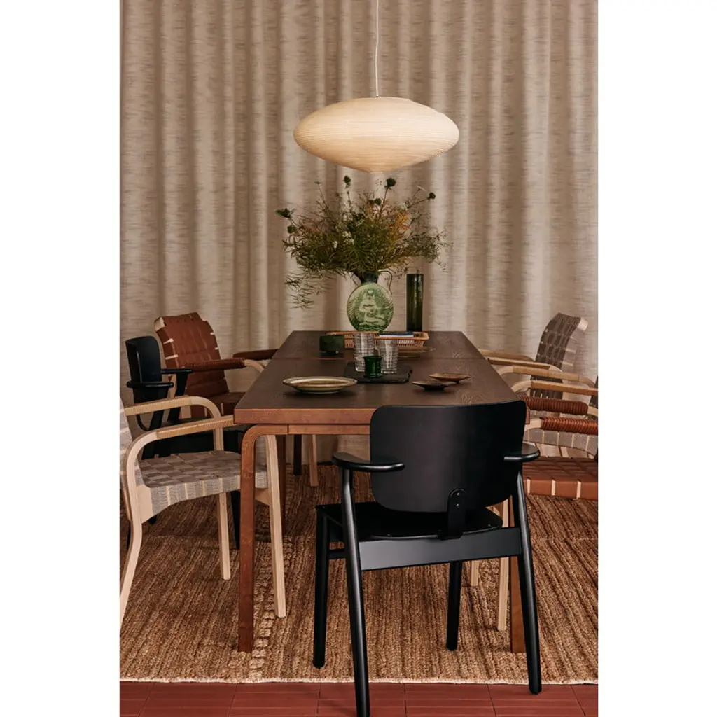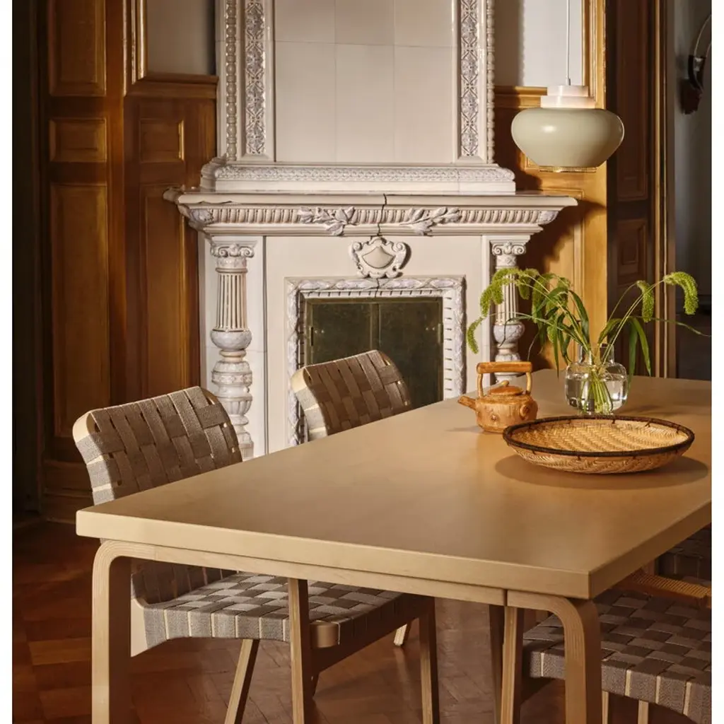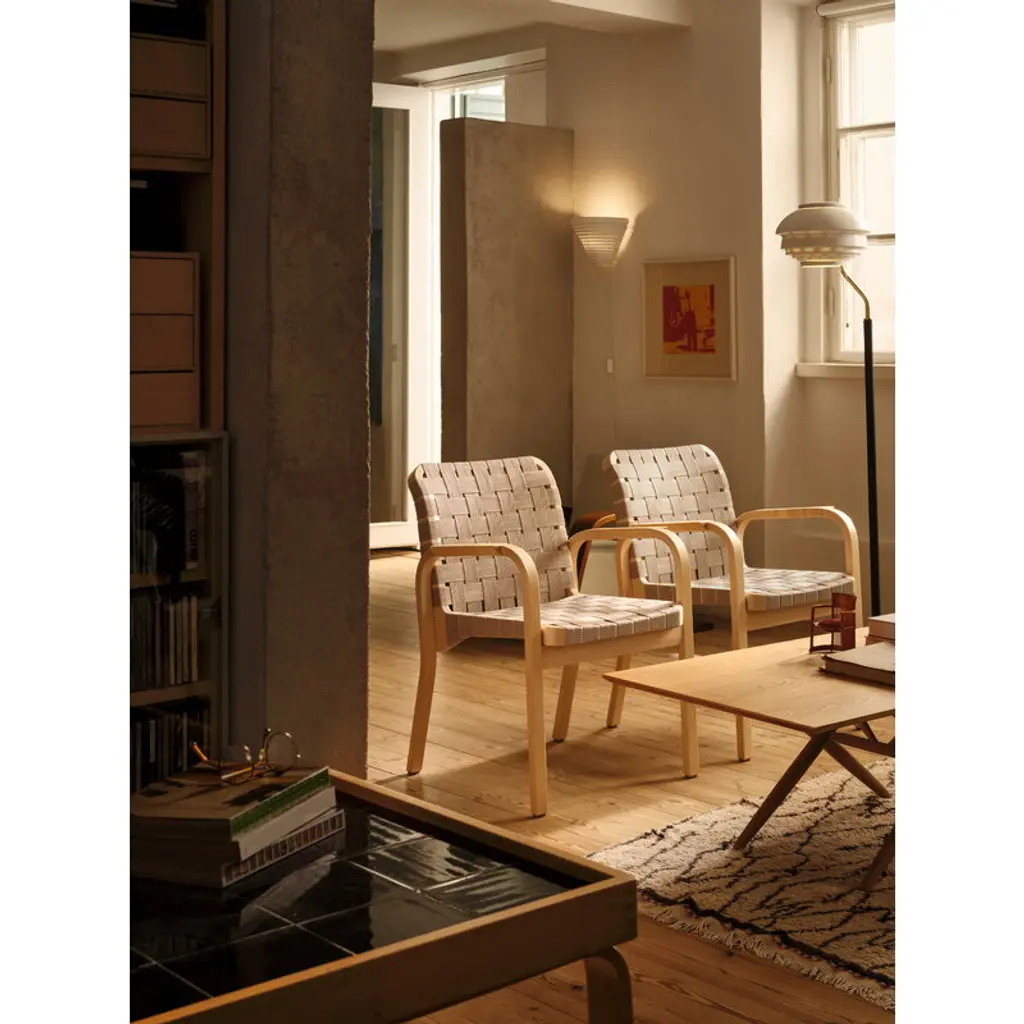 Artek's Aalto Armchair 45, originally designed by Alvar Aalto in 1947, is a refined armchair known for its versatility and timeless appearance. Made with linen webbing, the Armchair 45 is equally at home around a dining table, at a work desk, or as a cozy spot for relaxation. Chair 45 was a favorite of Aalto himself, and he used it in his own architectural office. In the updated version of Aalto's Armchair 45, released in 2024, the dimensions have been adjusted to meet today's standards. The seat and armrests have been slightly elevated, and the seating angle has been adjusted for a more upright posture. The iconic design remains true to its roots – unchanged where it counts because the functional elegance of Armchair 45 still shines in modern interiors. In this version, the chair's frame is made of birch, and the armrests are adorned with rattan weave.
