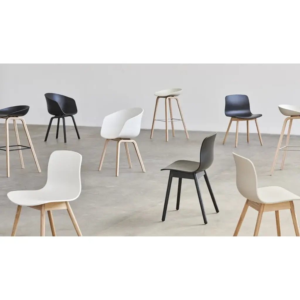 About A Chair AAC12 is part of HAY’s About A collection, created in close collaboration with designer Hee Welling, featuring chairs with outstanding simplicity and combinability. The chair's streamlined seat is crafted from recycled polypropylene, and its wooden frame is made from oak and finished with an eco-friendly water-based lacquer. In 2023, HAY updated the entire About A Collection with shells made from 100 % post-consumer plastic. With the About A collection, Hee Welling wanted to reach a new level in the combination of shape, function, comfort, detail, and esthetics. The idea was to develop a chair that would work equally well around a dining table and a conference table, as well as in a restaurant, café or office. Due to their simple and straightforward design, the chairs can be combined with many types of furniture and interiors.