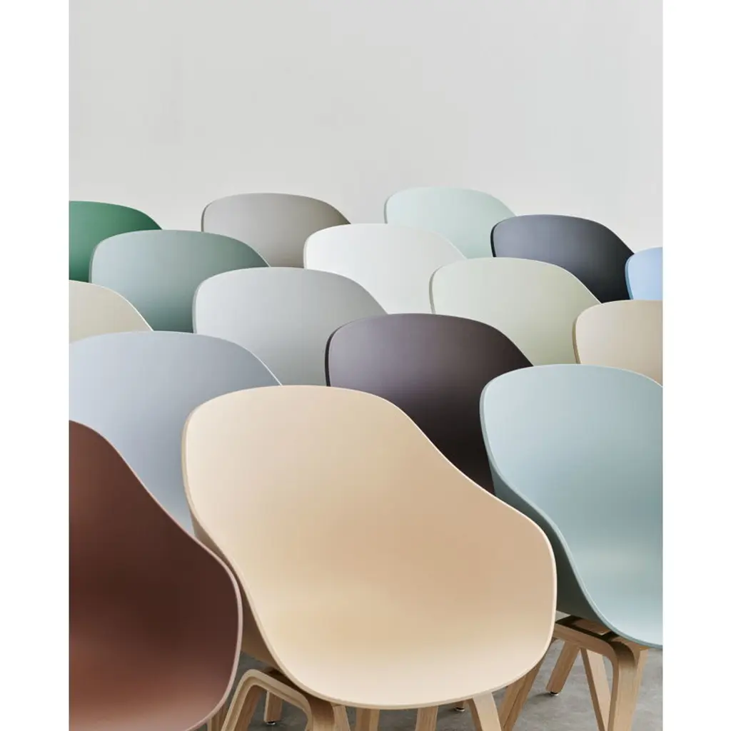 About A Chair AAC22 is part of HAY’s About A collection, created in close collaboration with designer Hee Welling, featuring chairs with outstanding simplicity and combinability. The chair's streamlined seat is crafted from recycled polypropylene, and its wooden frame is made from oak and finished with an eco-friendly water-based lacquer. In 2023, HAY updated the entire About A Collection with shells made from 100 % post-consumer plastic. With the About A collection, Hee Welling wanted to reach a new level in the combination of shape, function, comfort, detail, and esthetics. The idea was to develop a chair that would work equally well around a dining table and a conference table, as well as in a restaurant, café or office. Due to their simple and straightforward design, the chairs can be combined with many types of furniture and interiors.