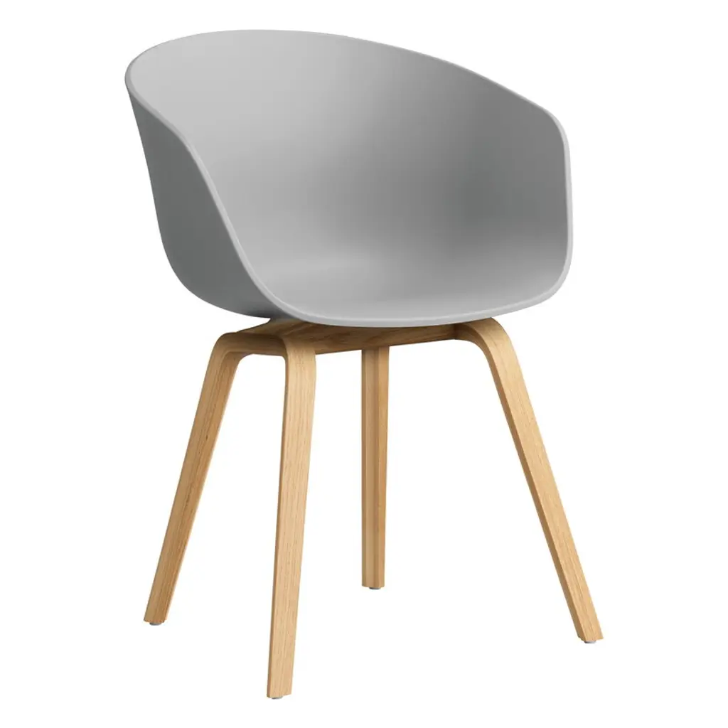 About A Chair AAC22 is part of HAY’s About A collection, created in close collaboration with designer Hee Welling, featuring chairs with outstanding simplicity and combinability. The chair's streamlined seat is crafted from recycled polypropylene, and its wooden frame is made from walnut and finished with an eco-friendly water-based lacquer. In 2023, HAY updated the entire About A Collection with shells made from 100 % post-consumer plastic. With the About A collection, Hee Welling wanted to reach a new level in the combination of shape, function, comfort, detail, and esthetics. The idea was to develop a chair that would work equally well around a dining table and a conference table, as well as in a restaurant, café or office. Due to their simple and straightforward design, the chairs can be combined with many types of furniture and interiors.