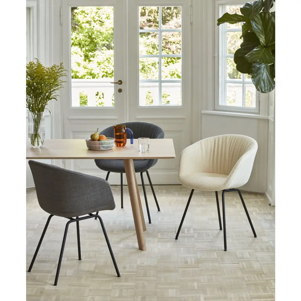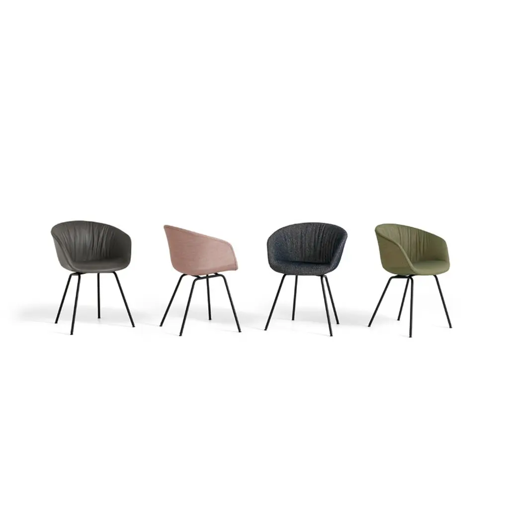 About A Chair AAC27 Soft by HAY combines a sleek metal frame with a plush padded seat. The soft quilted shell makes the chair super comfy and gives it a cozy, relaxed look. The About A Soft chairs are part of HAY’s About A collection, created in close collaboration with designer Hee Welling, featuring chairs with outstanding simplicity and combinability. With the About A collection, Welling wanted to reach a new level in the combination of shape, function, comfort, detail, and esthetics. The idea was to develop a chair that would work equally well around a dining table and a conference table, as well as in a restaurant, café or office. Due to their simple and straightforward design, the chairs can be combined with many types of furniture and interiors.