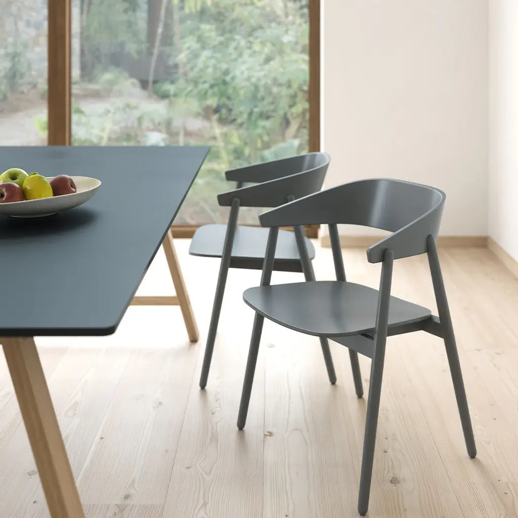 The AC2 chair is a classic and comfortable chair, designed by byKATO. It showcases a minimalist, Scandinavian aesthetic characterized by elegant details and soft contours. The AC2 chair is a comfortable chair and its simple veneer seat gives the chair a light expression that fits well into many different interior styles. The AC2 chair provides a comfortable seating solution for dining gatherings, meetings, or cafeteria spaces. The chair's legs can be fitted with anti-slip and noise-absorbing pads which help finish the chair in a rounded, light and floating way. Additionally, there is an option for a padded seat in a fabric and color of your choice.