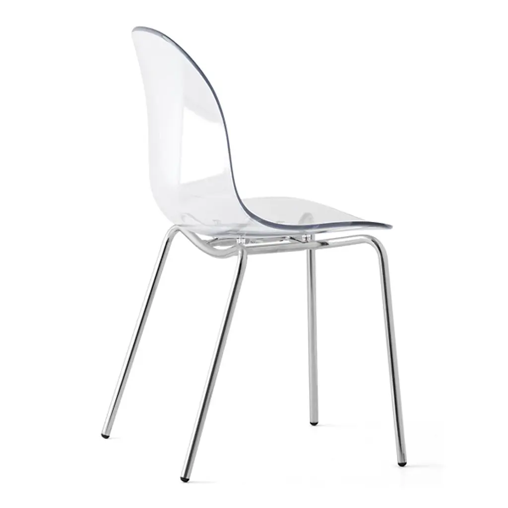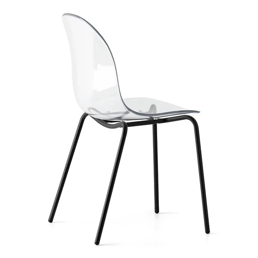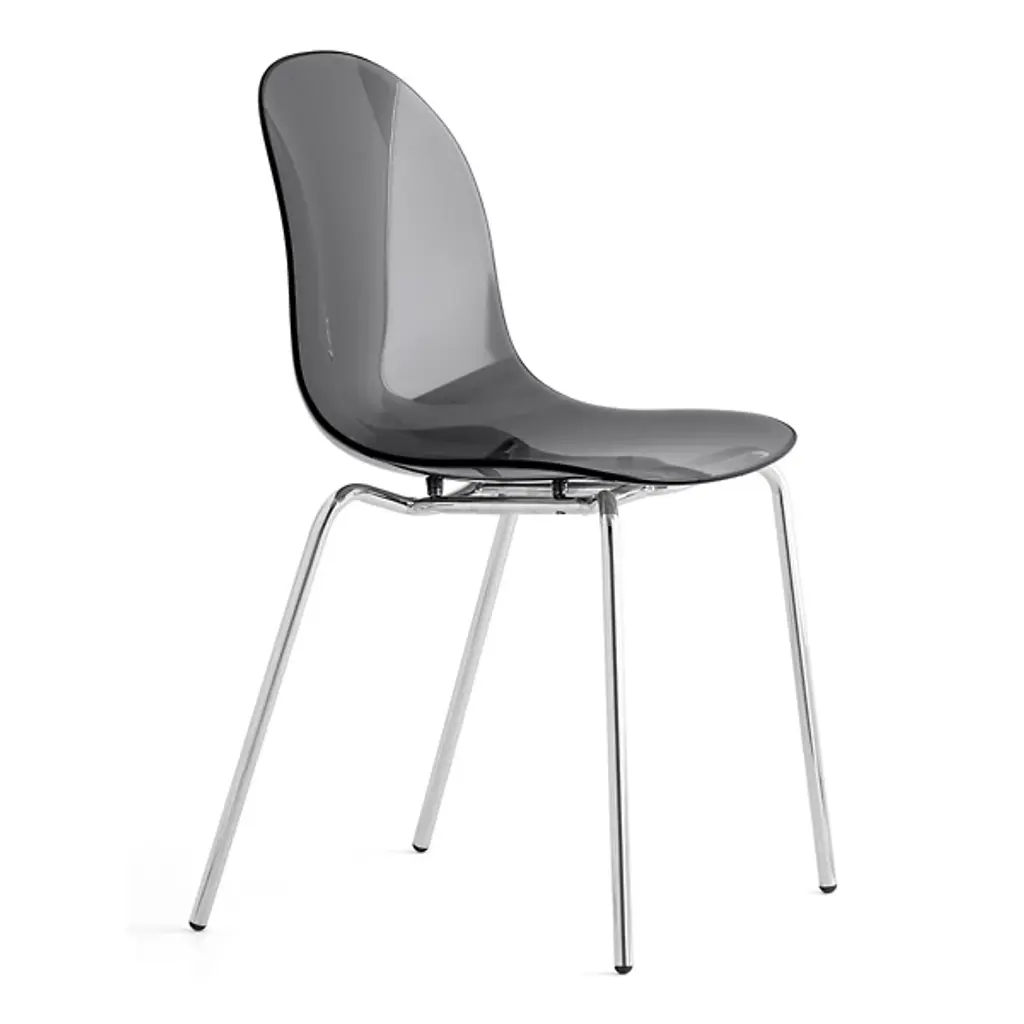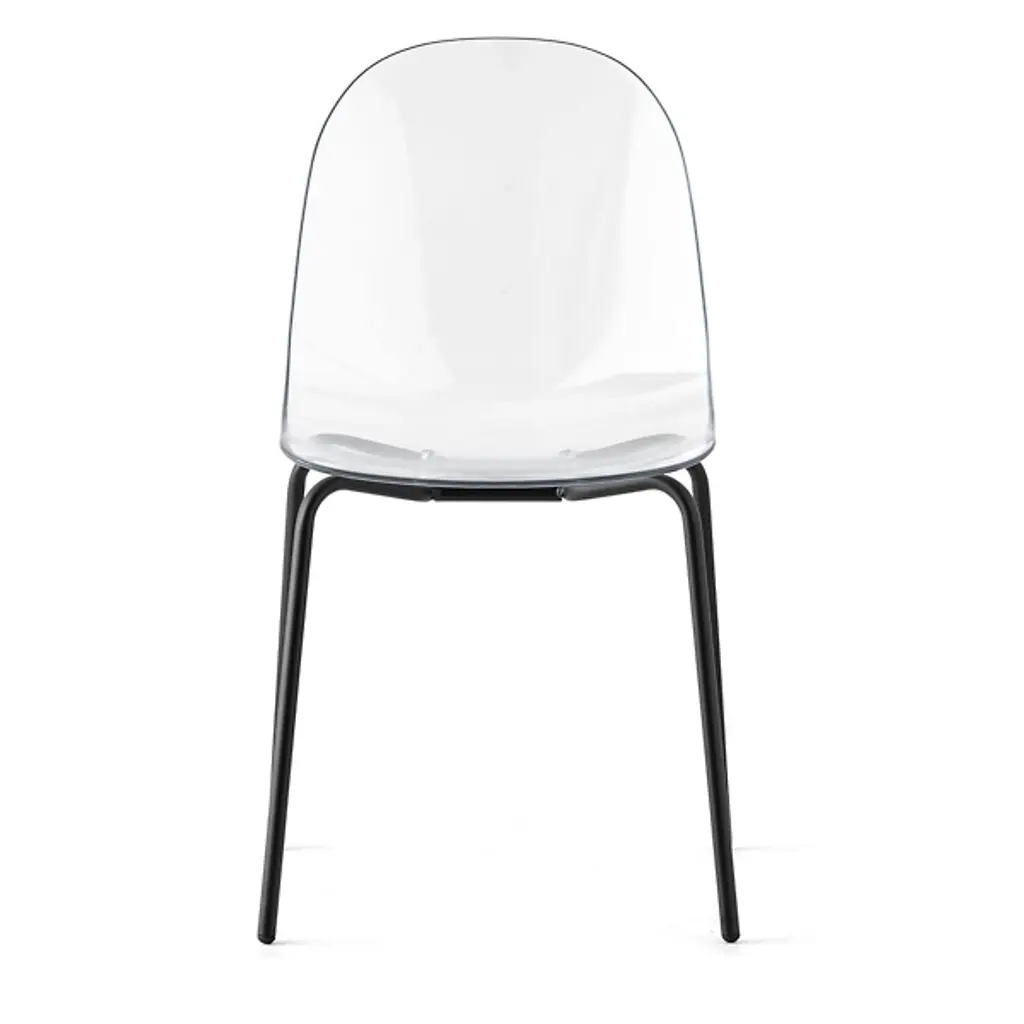 The Academy Transparent Chair with Metal Base from Connubia combines contemporary design and comfort. This armless chair features a metal base. The contoured seat, crafted from durable polycarbonate, gives this furnishment its distinctiveness. Its transparent design allows it to seamlessly blend into your decor while making a statement. With its minimalist aesthetic, Academy elevates your interior. This versatile seat is balanced by a collection of streamlined legs which can be easily placed upon your hard-surface floor.