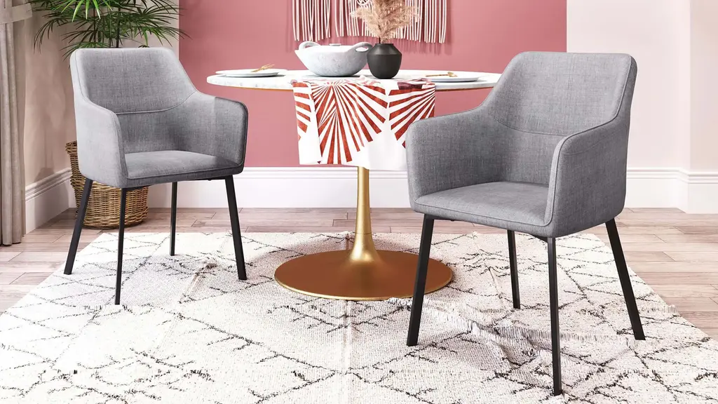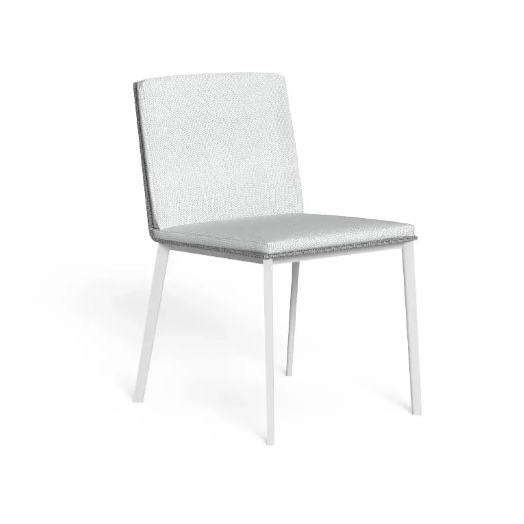 The Adage Dining Chair set of 2 has a powder coated steel frame with a water-resistant covering.