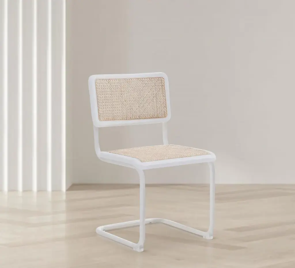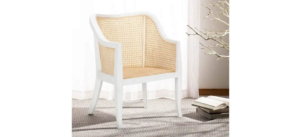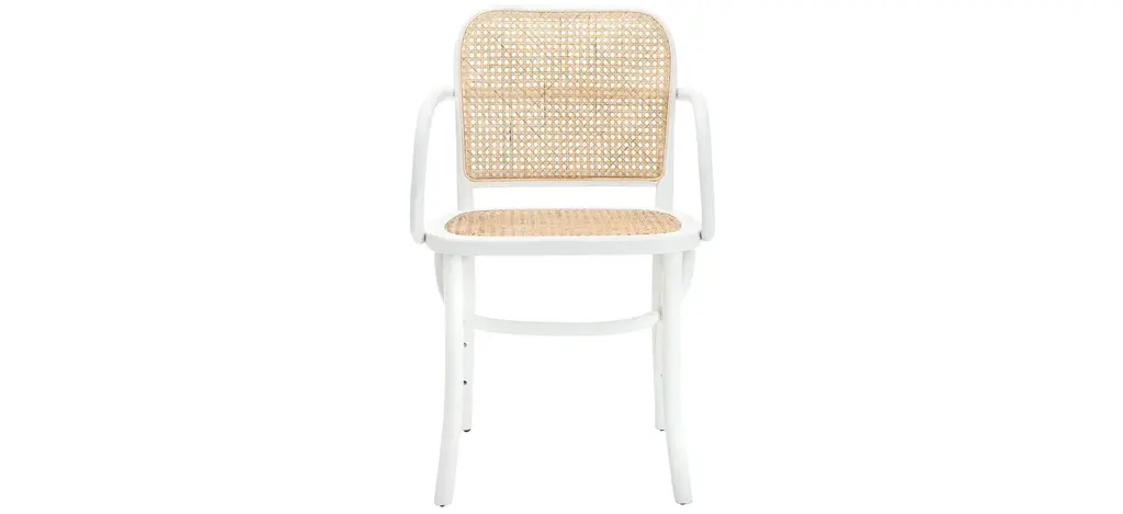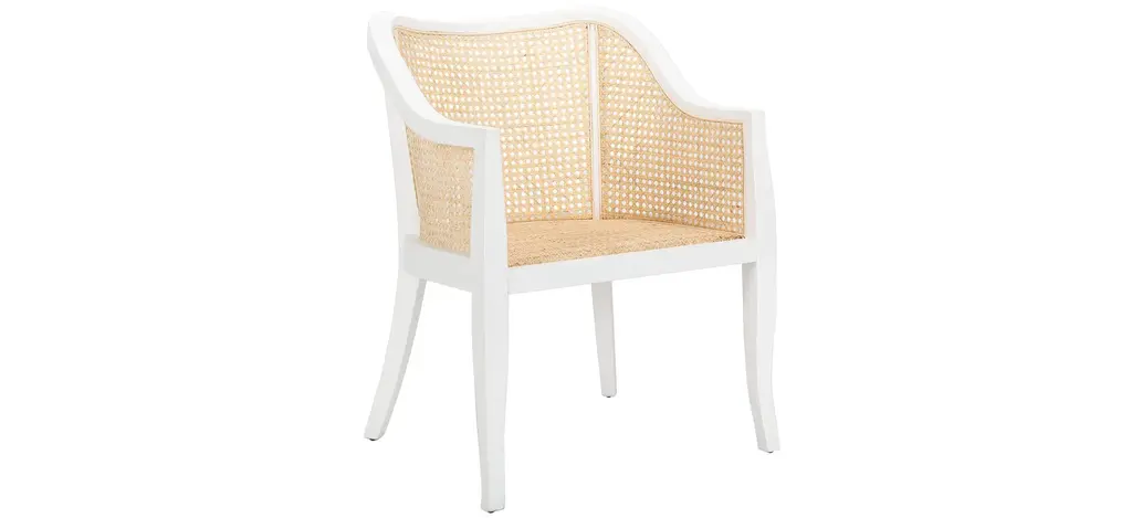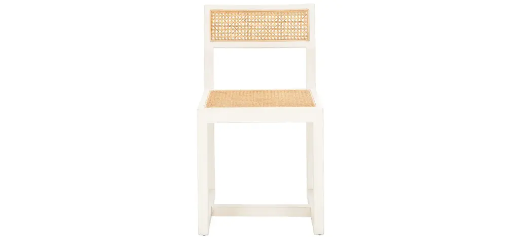 Defined by its extraordinary craftsmanship, this contemporary Adal Dining Chair instantly upgrades any dining room. The gentle curves of its clean white wood frame provides a beautifully juxtaposition to its contrasting natural cane details.