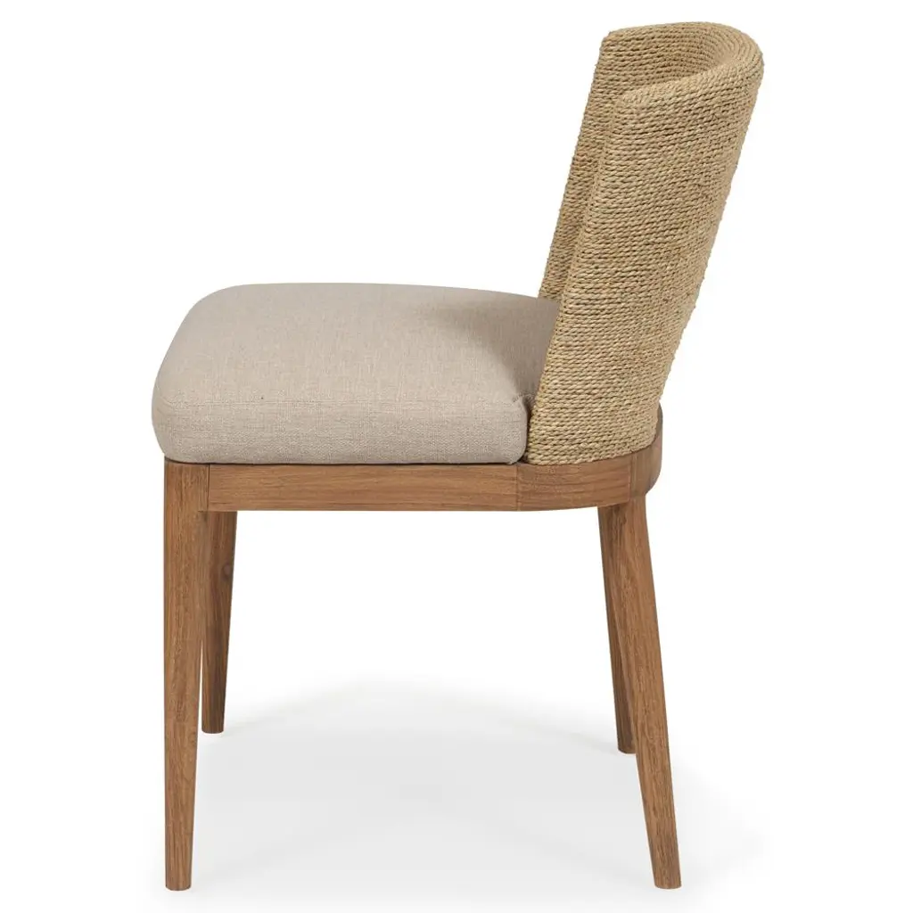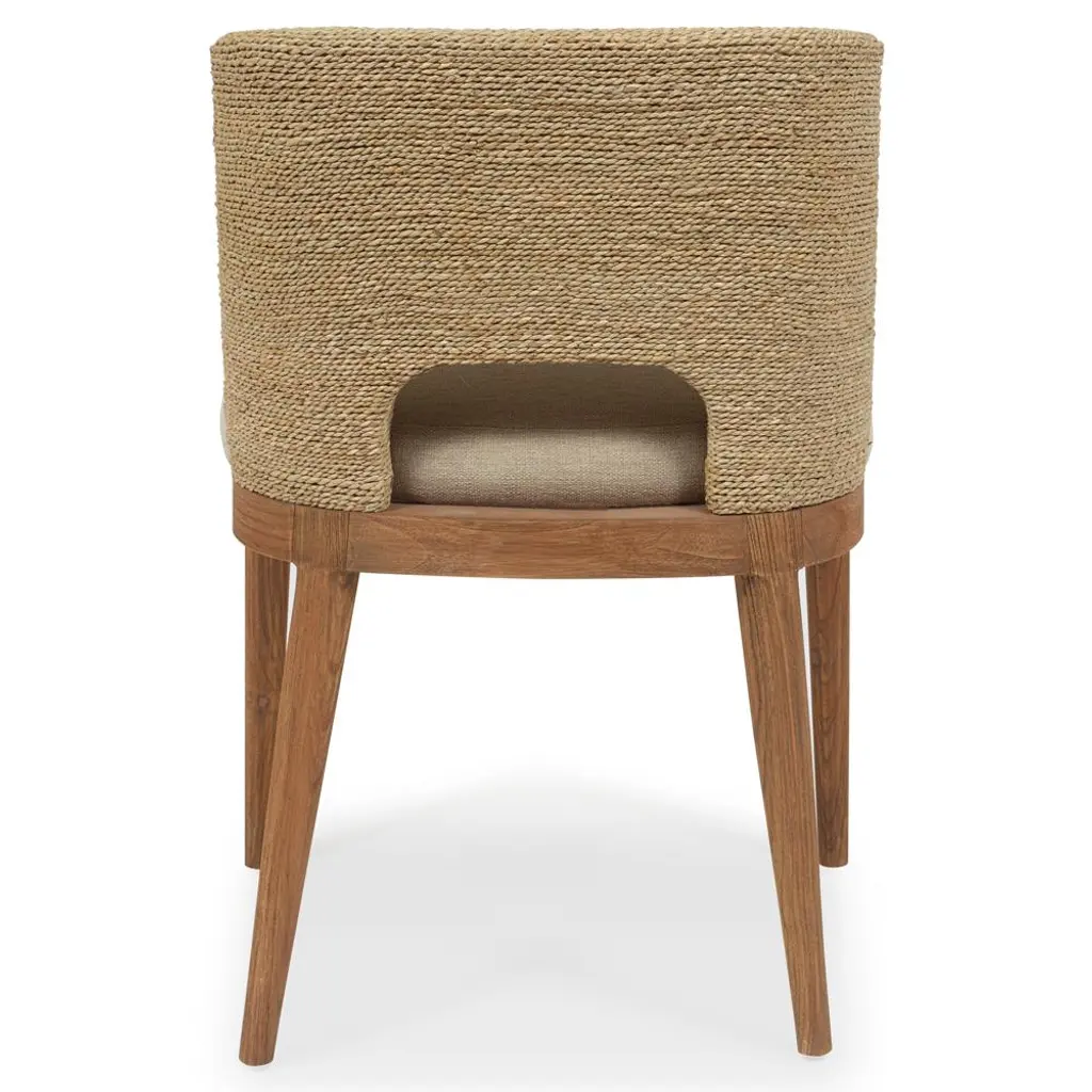 Adelyn Coastal Beach Beige Performance Brown Teak Woven Dining Chair