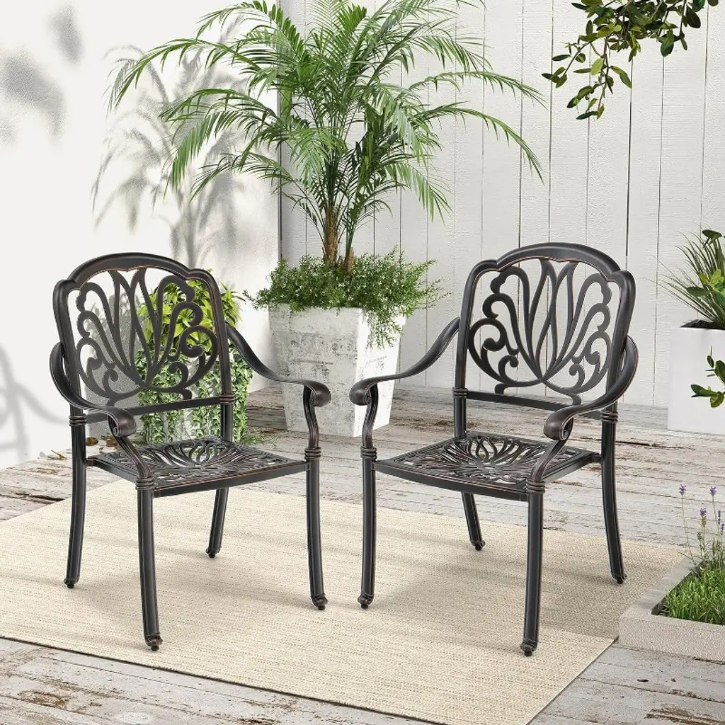 Adile Cast Aluminum Patio Dining Chairs, Set Of 2, Bronze