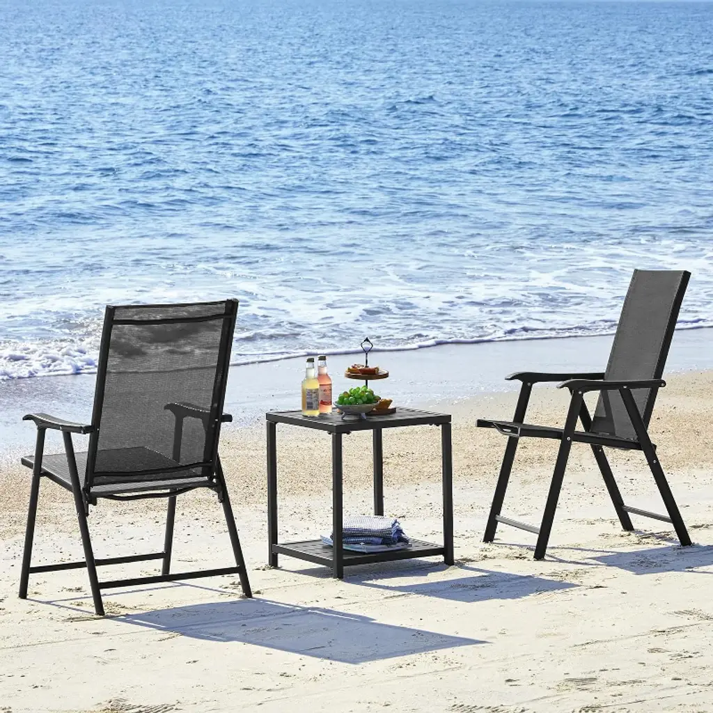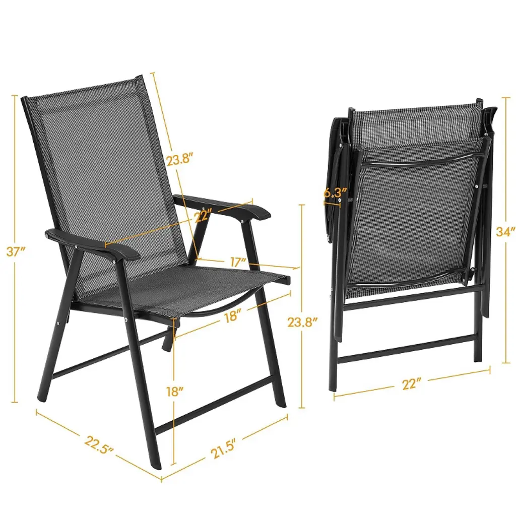 This patio dining chair is designed to be foldable with a foldedsize of 34″ L × 22″ W × 6.5″ Thickness and weighing (each) 11.2 lb. The compact folded size and lightweight make it stress-free to store in yourgarage, trunk room, or on a storage rack. If your outdoor space is limited, this set would be your ideal solution.