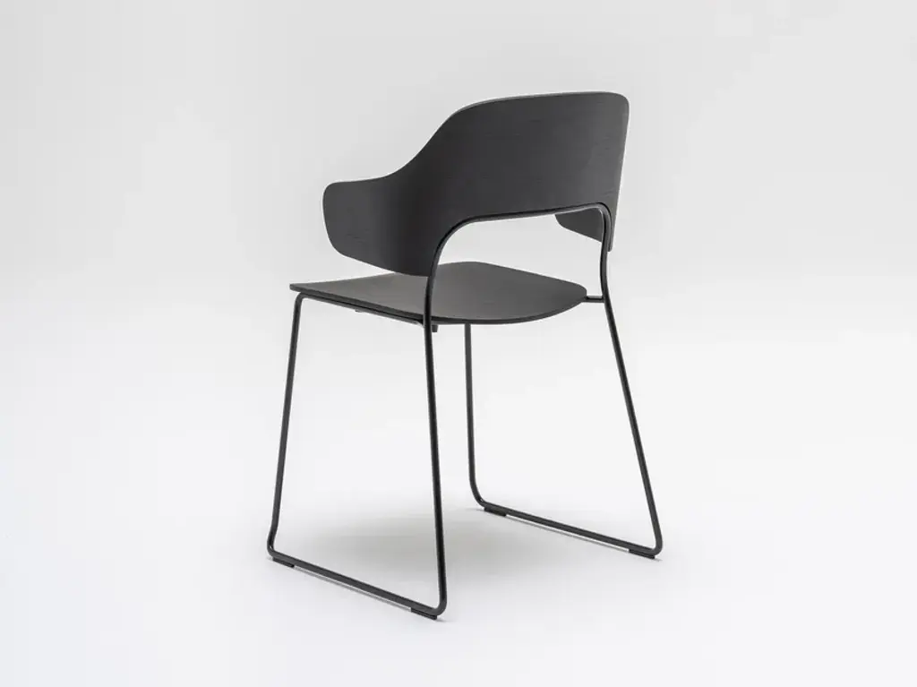 Designed with utmost attention to details and manufactured with the finest craftsmanship – AFI is the ultimate answer to a versatile chair. Its adaptiveness to the specificity of the surroundings makes it an obvious pick for hotels, medical centres, restaurants, offices, but also residential and public spaces.The backrest was designed with comfort in mind. Embracing the user in a delicate grip, AFI ensures a stable sitting position. The powder-coated black matte finish of the frame helps AFI seamlessly blend with any interior and emphasises its exquisite shape. Both the seat and the backrest are made of veneer plywood available in two subdued shades of oak.AFI conveys the concept of minimalism supported by the high-quality materials making its affiliation with the Scandinavian design by no means accidental.